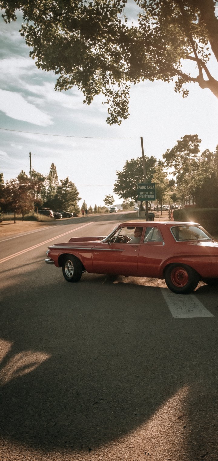 Wallpaper: red car, city - 720x1520