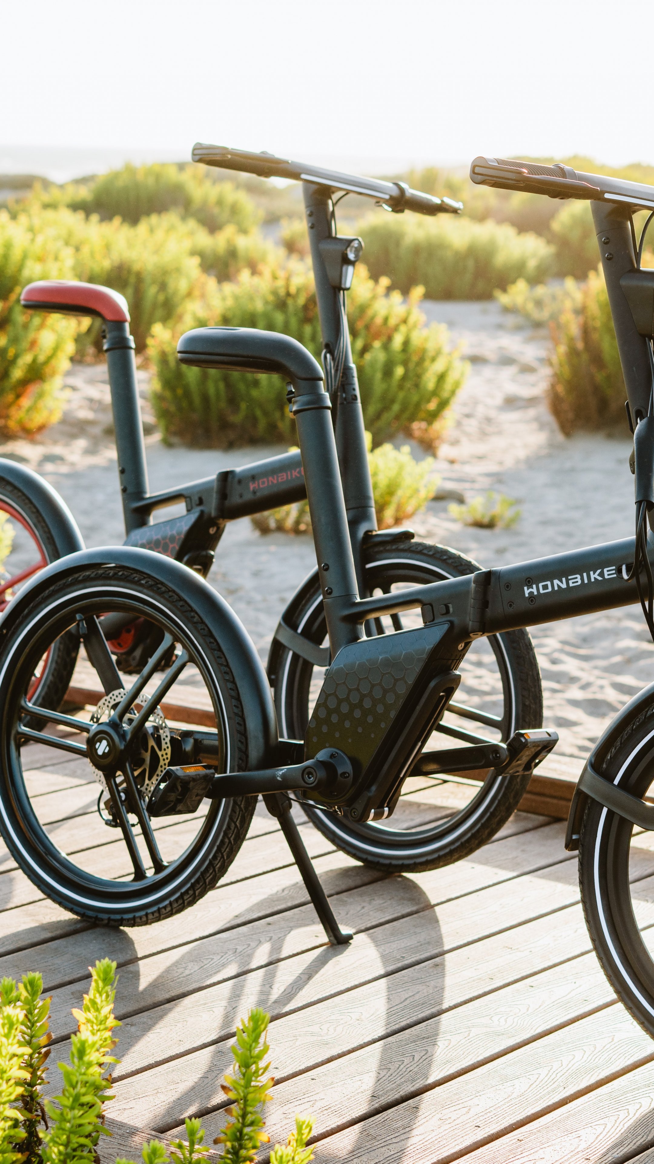 Wallpaper: two bikes, walkway on the beach - 2160x3840