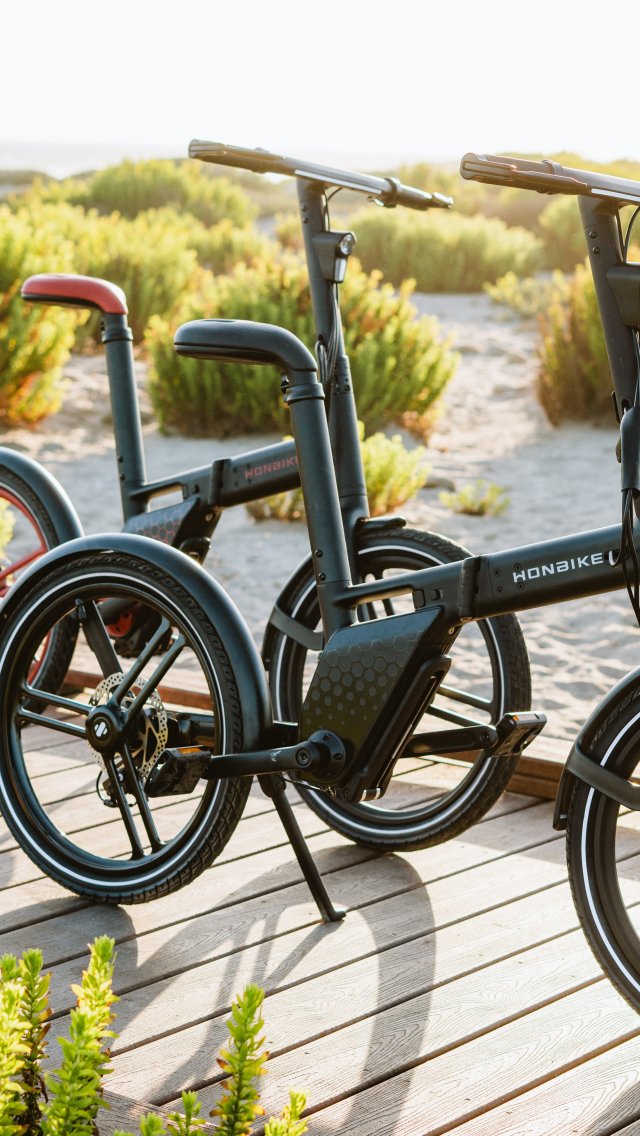 Wallpaper: two bikes, walkway on the beach - 640x1136