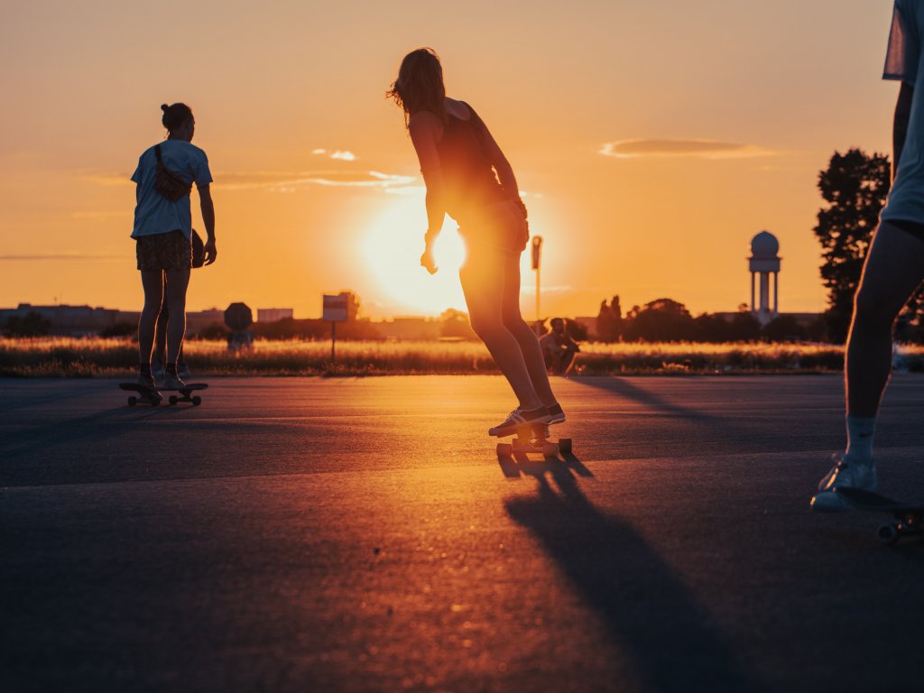 Wallpaper: skateboarders, sunset - 1024x768