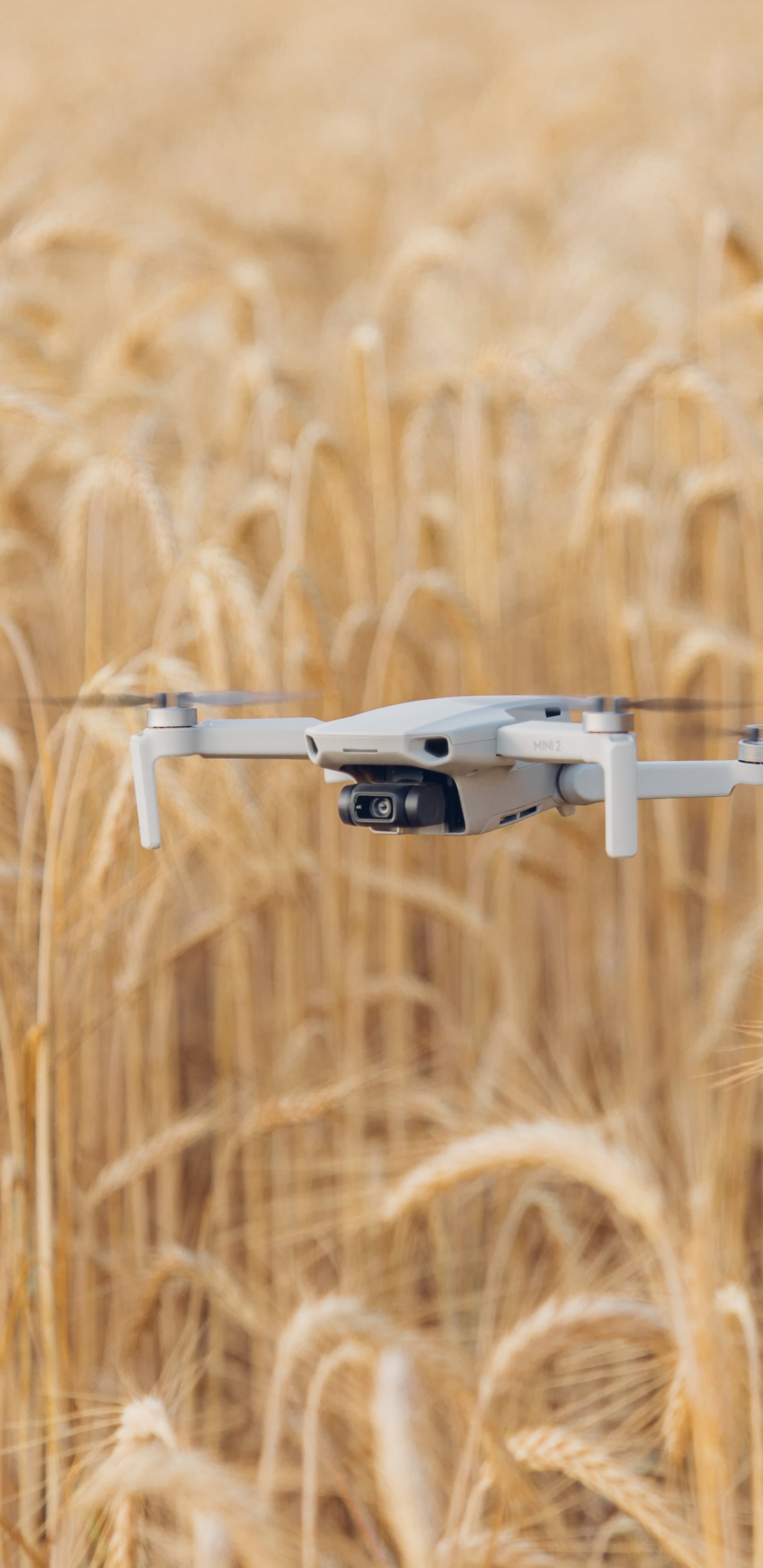 Wallpaper: drone flying over the field - 1440x2960