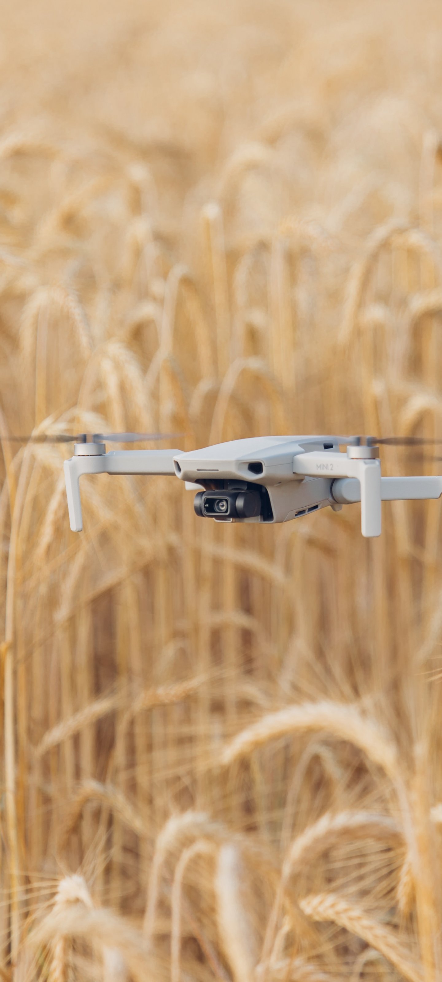 Wallpaper: drone flying over the field - 1440x3200