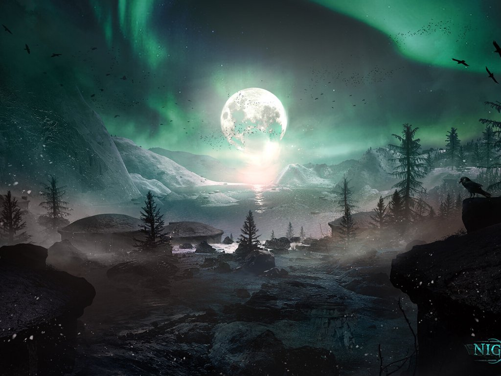 Wallpaper: night, northern lights, moon - 1024x768