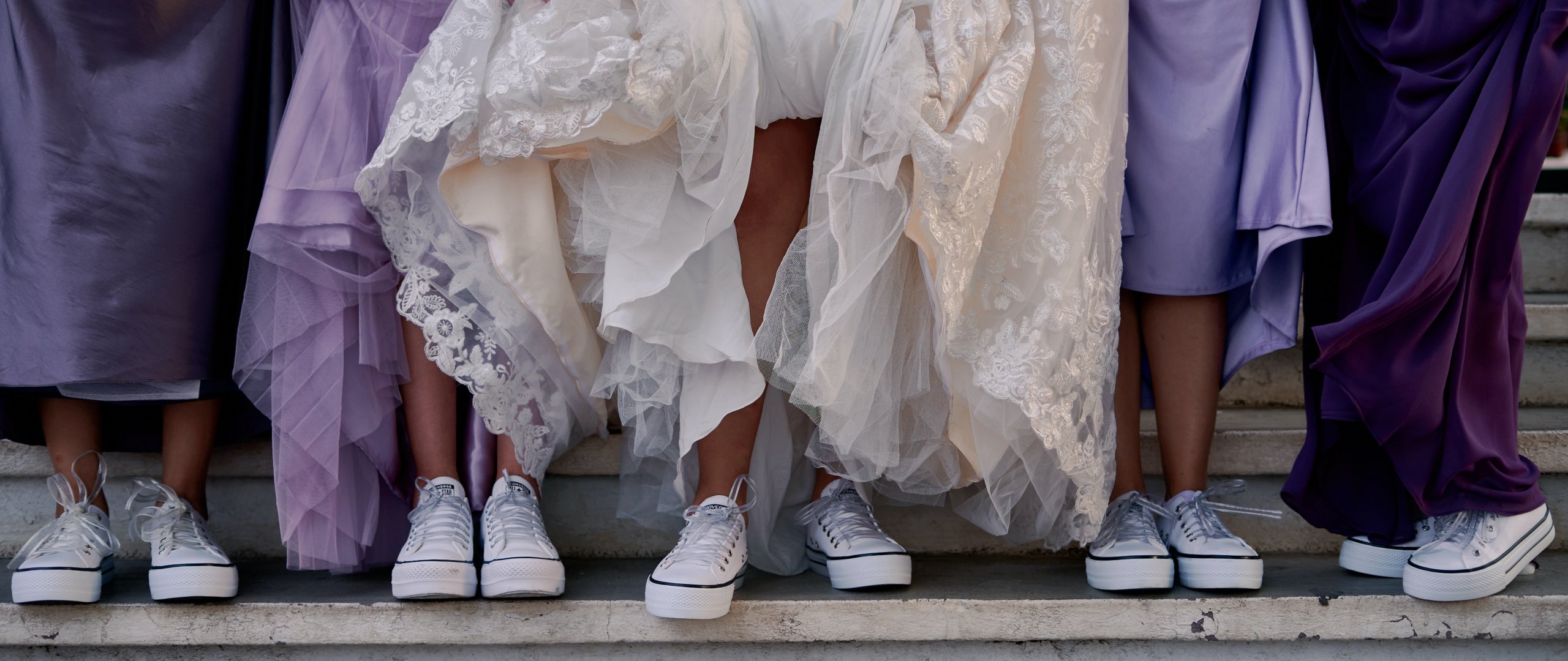 Wallpaper: wedding, girls in sneakers - 2560x1080