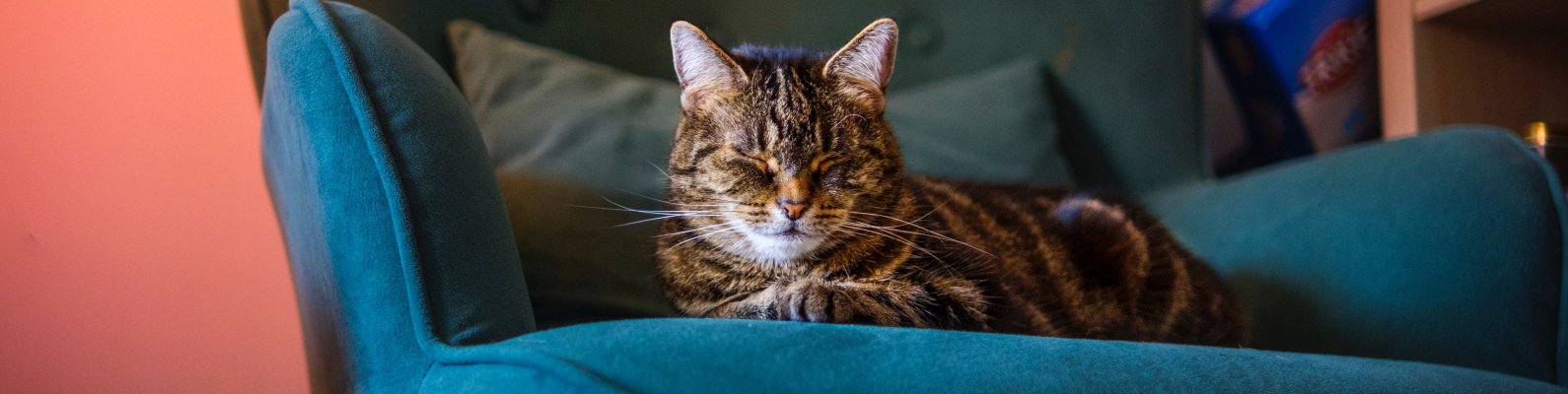 Wallpaper: cat lies in a chair - 1590x400