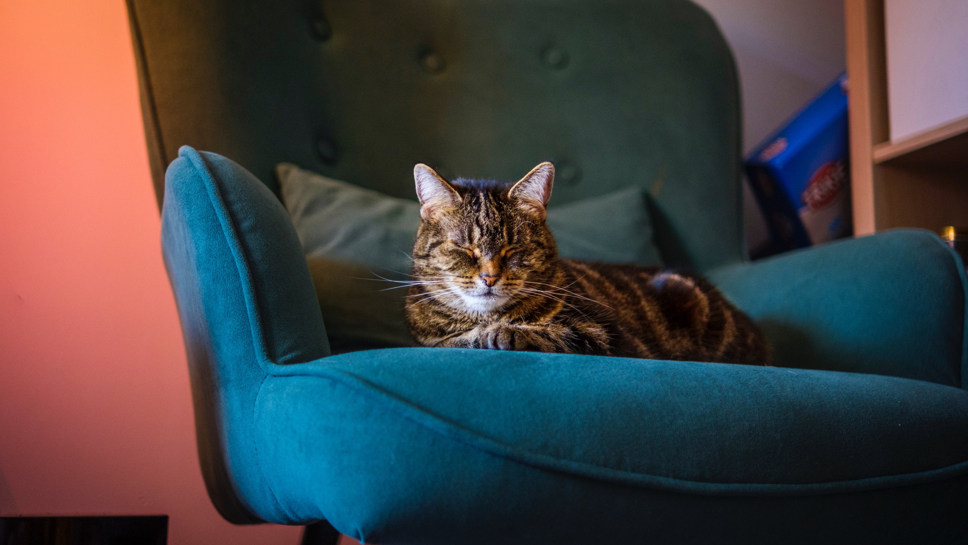 Wallpaper: cat lies in a chair - 3840x2160