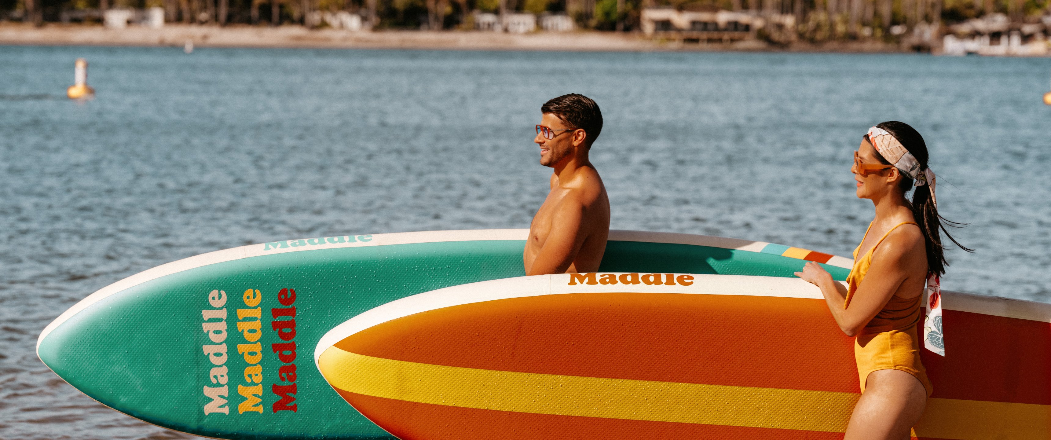 Wallpaper: surfers, beach - 3440x1440