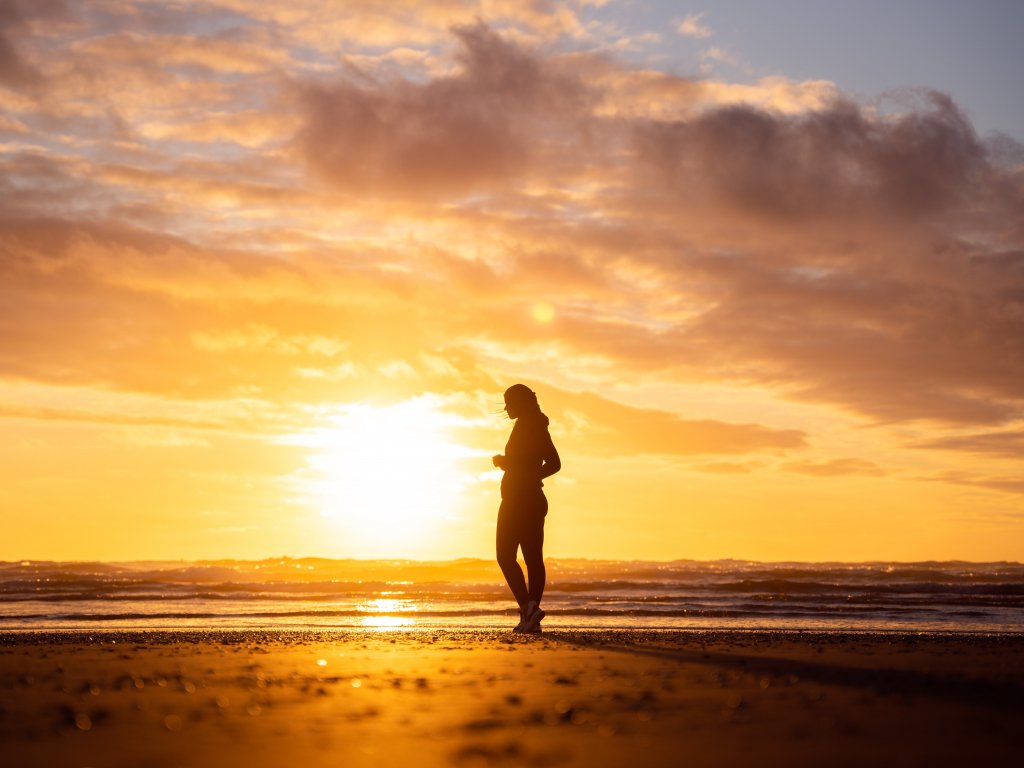 Wallpaper: girl on sunset background - 1024x768