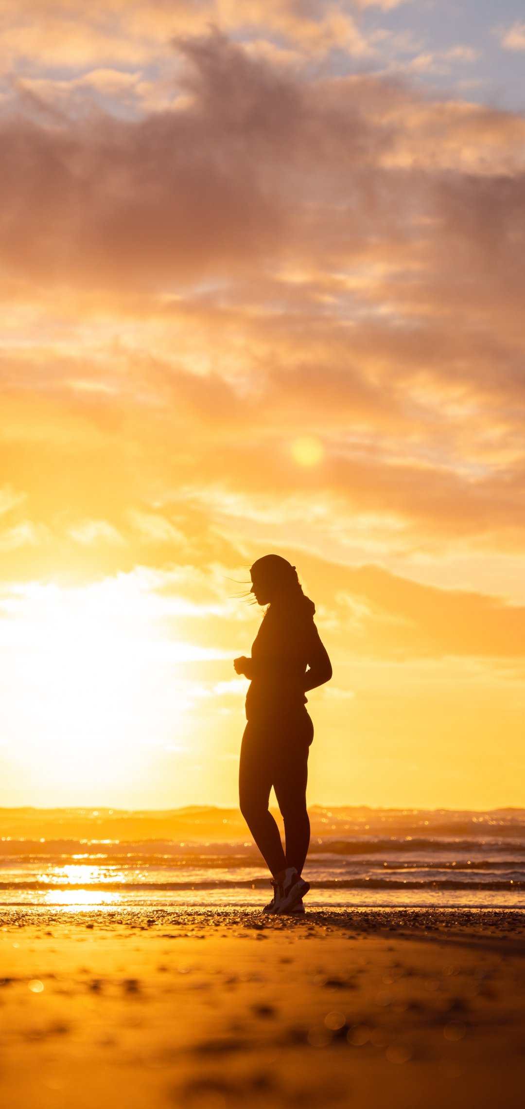 Wallpaper: girl on sunset background - 1080x2280