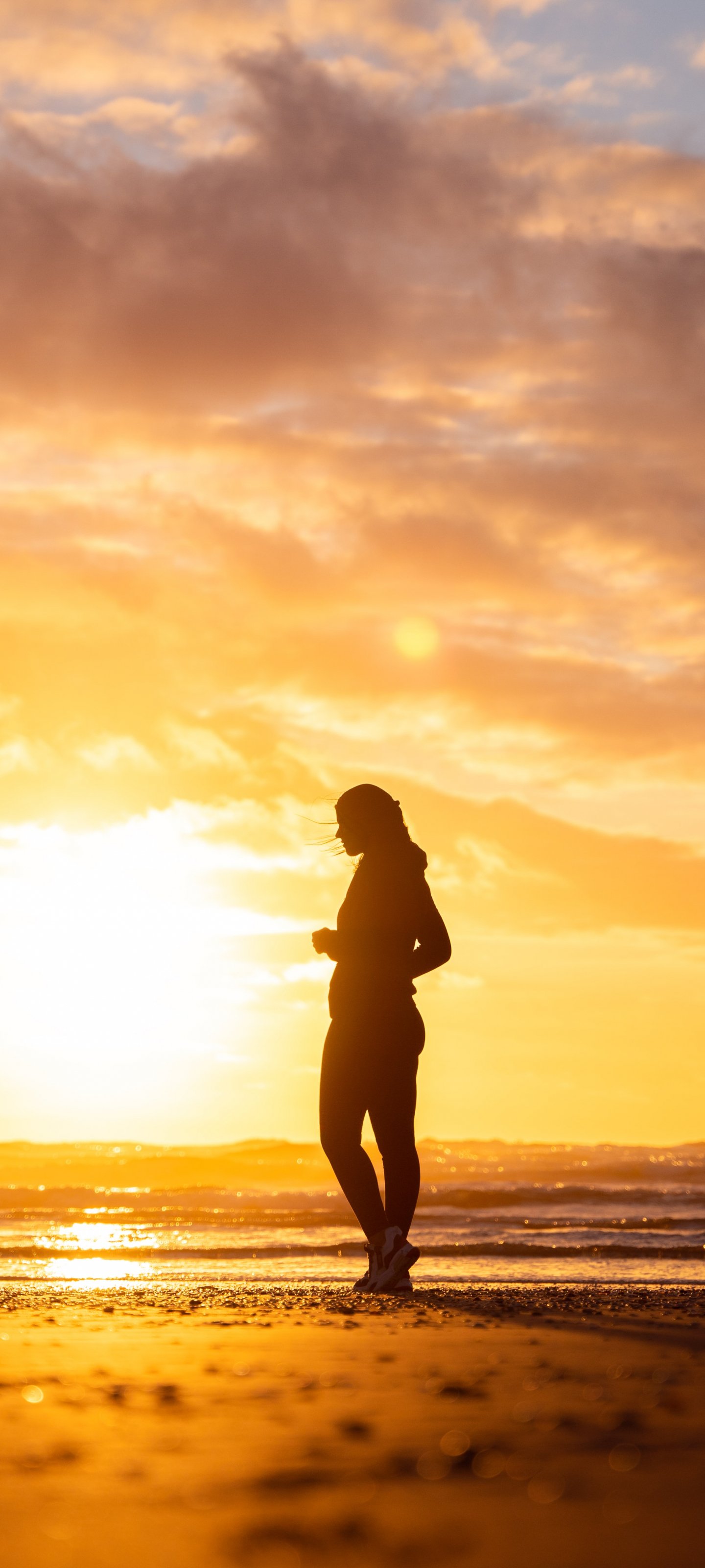 Wallpaper: girl on sunset background - 1440x3200