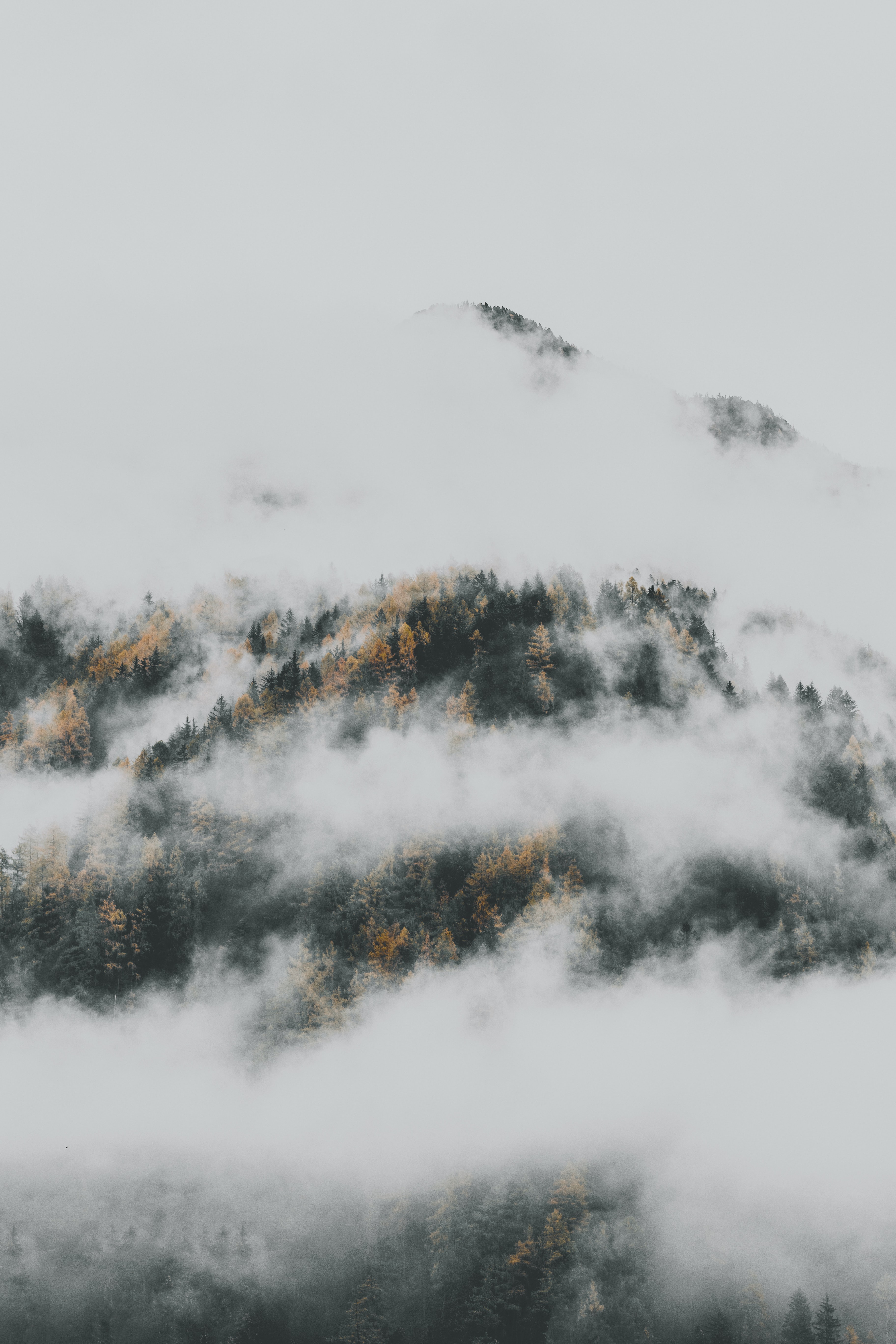 Wallpaper: the fog descended from the mountains - 3648x5472