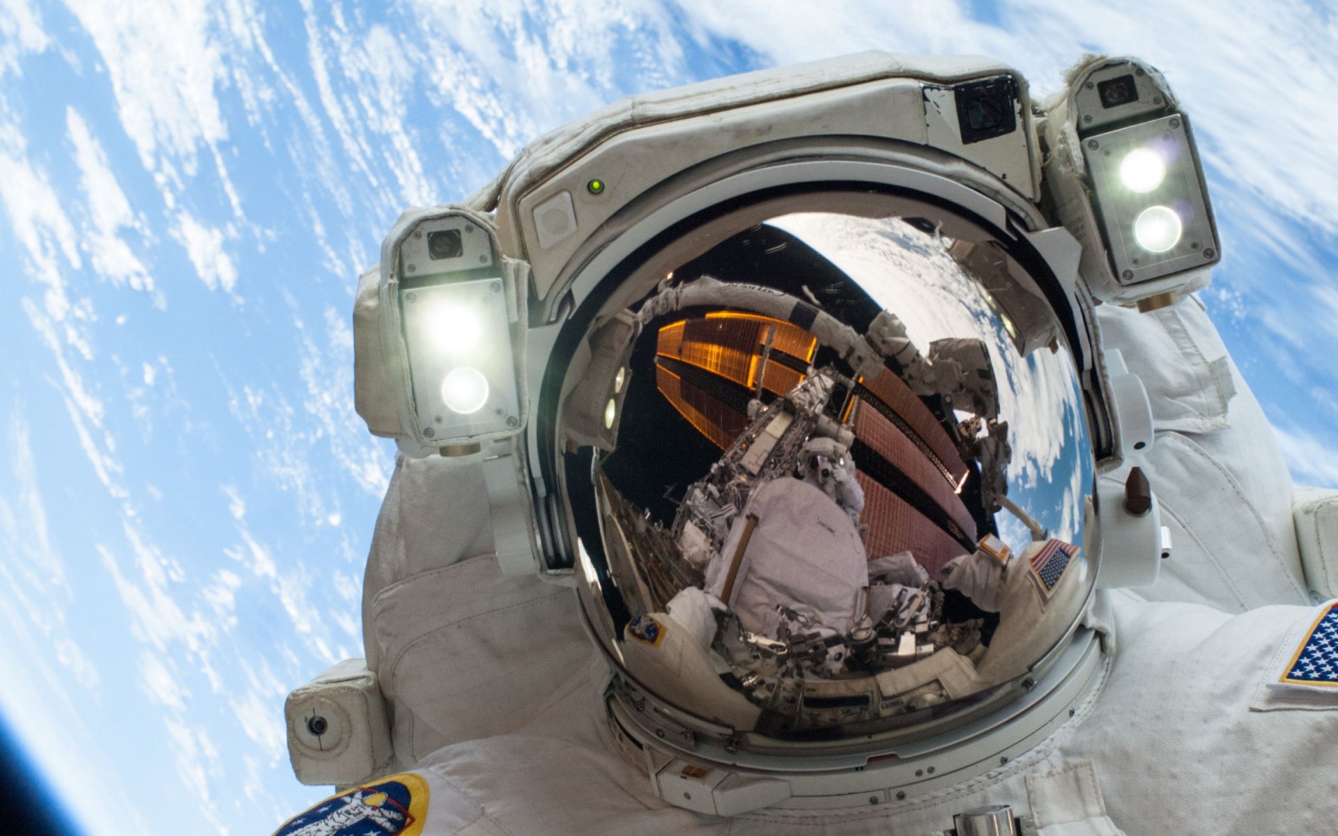 Wallpaper: astronaut, selfie, planet earth - 1920x1200