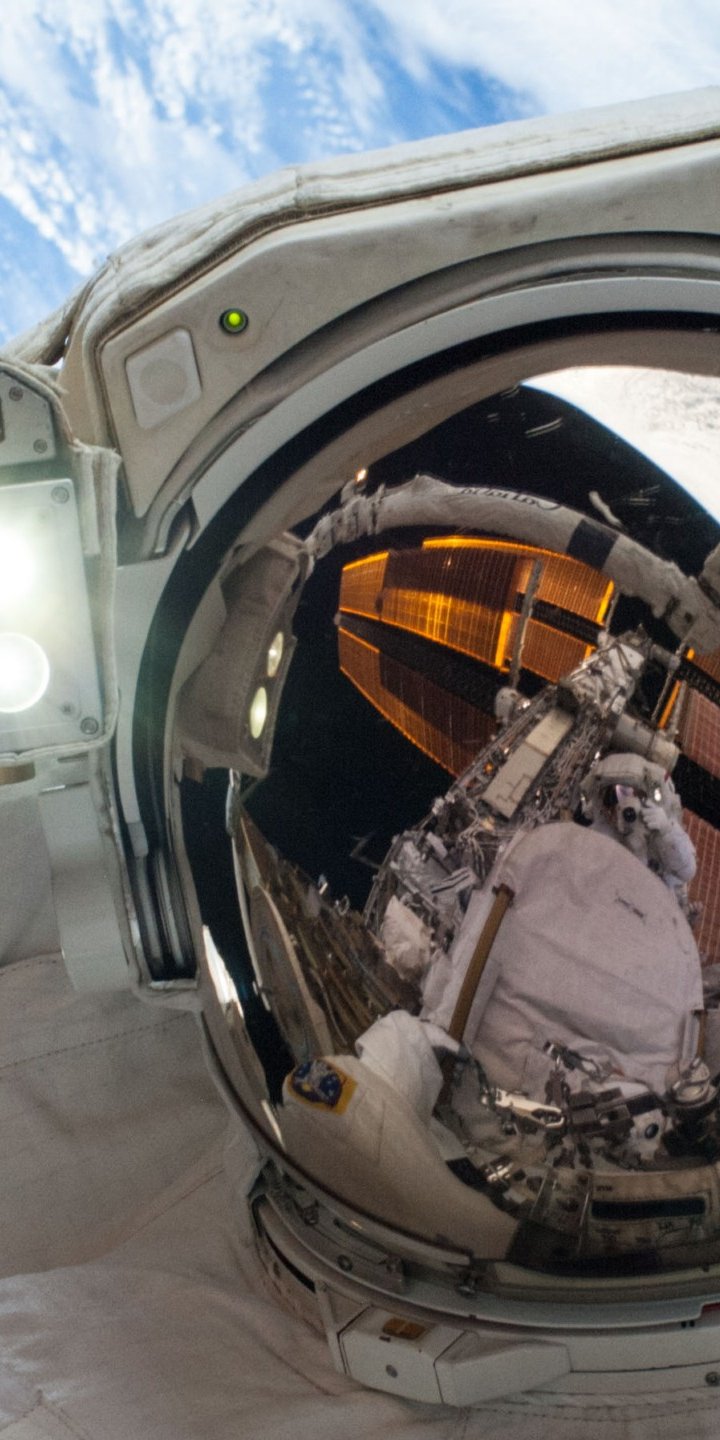 Wallpaper: astronaut, selfie, planet earth - 720x1440