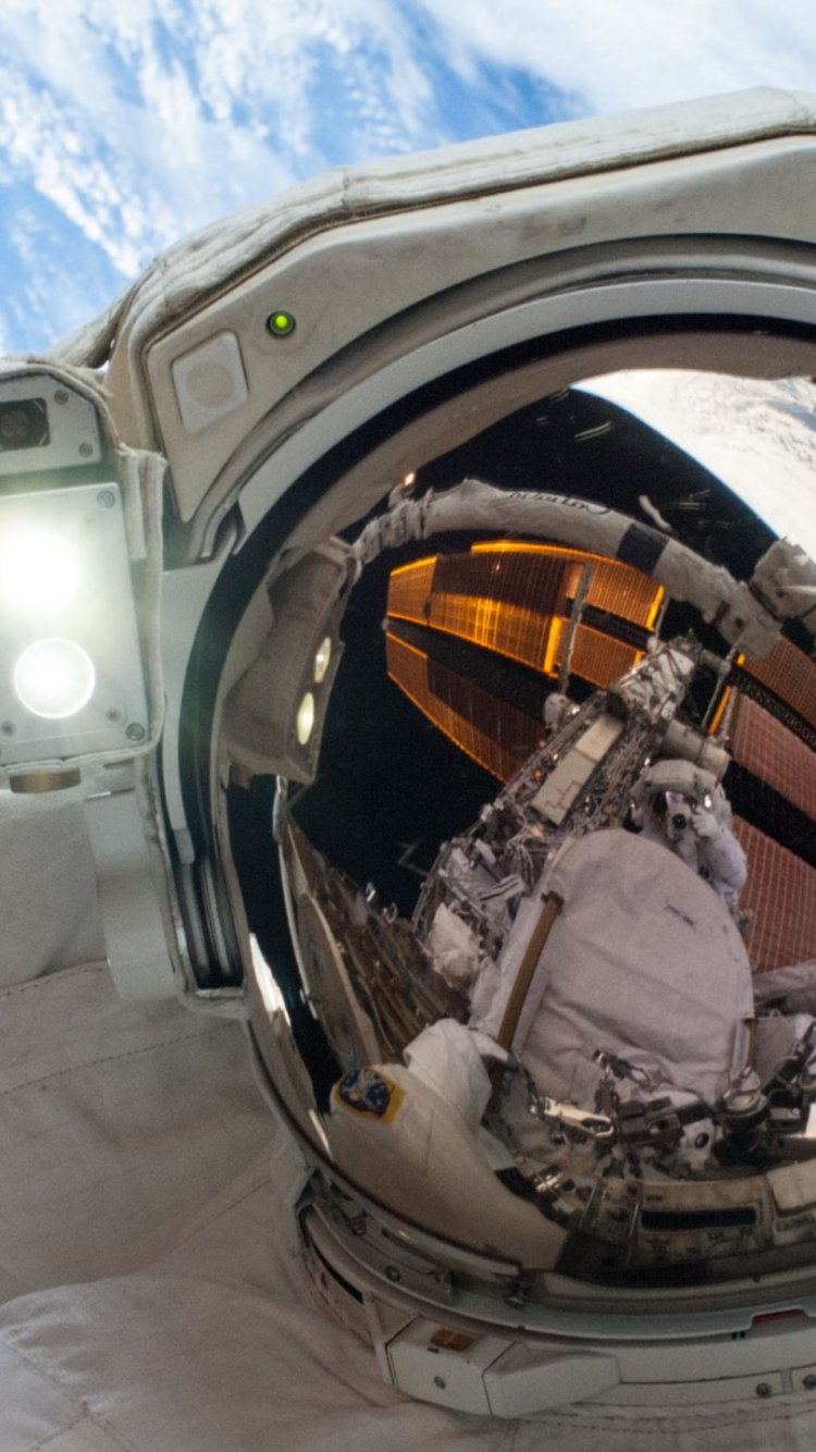 Wallpaper: astronaut, selfie, planet earth - 750x1334