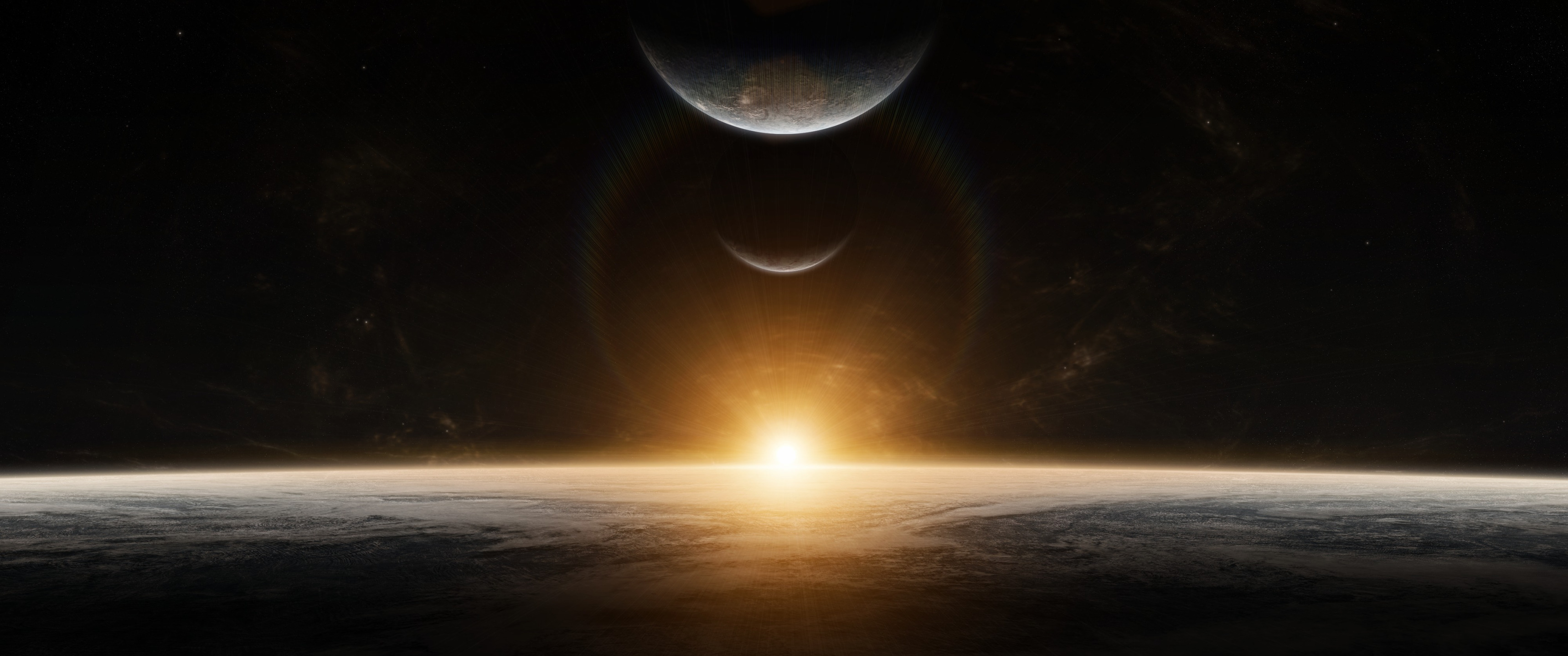 Wallpaper: planet, sunlight, black - 3440x1440