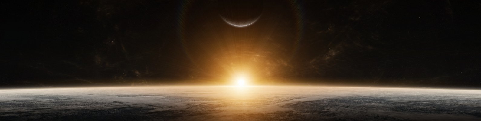 Wallpaper: planet, sunlight, black - 1590x400
