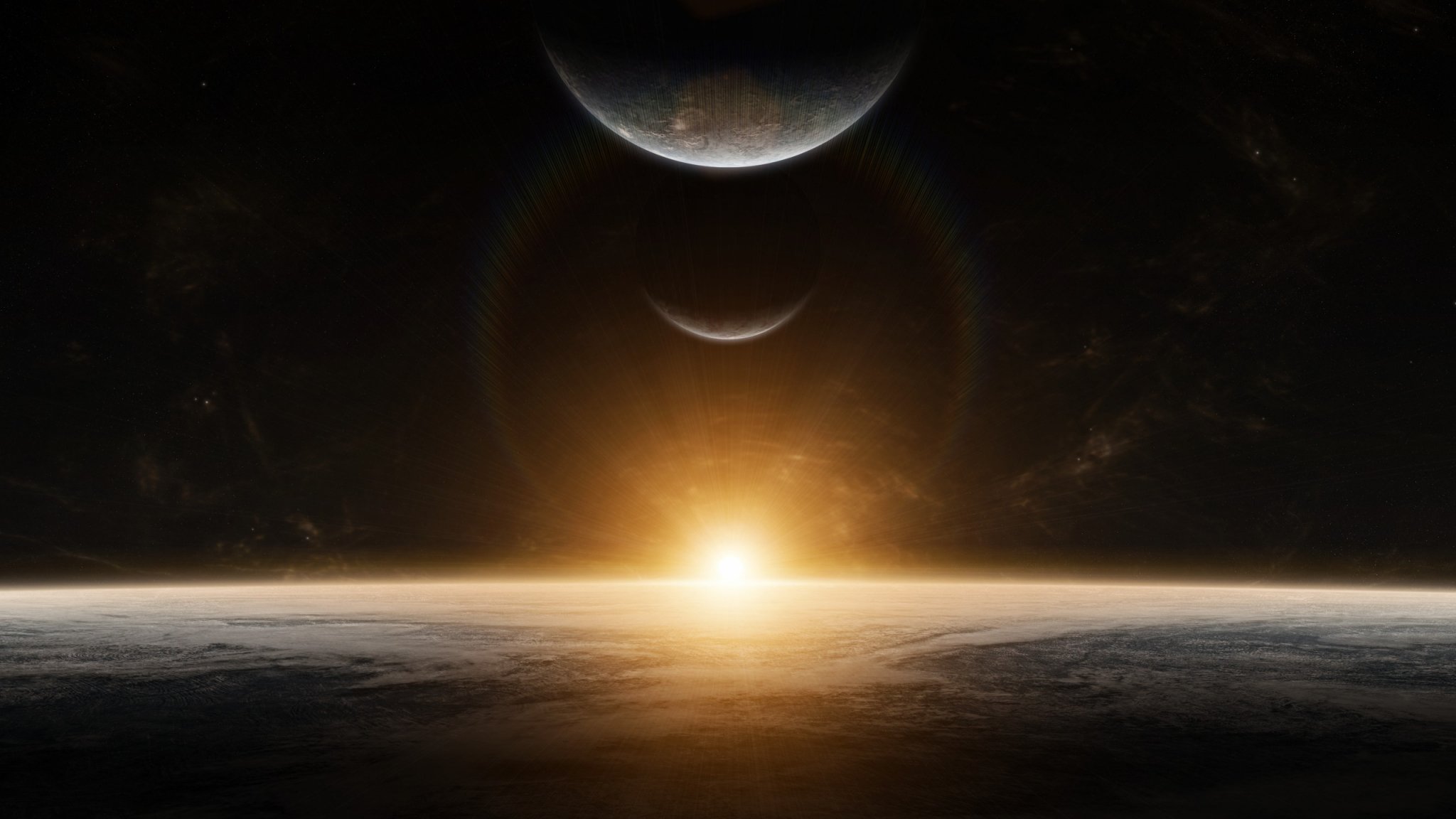Wallpaper: planet, sunlight, black - 2048x1152