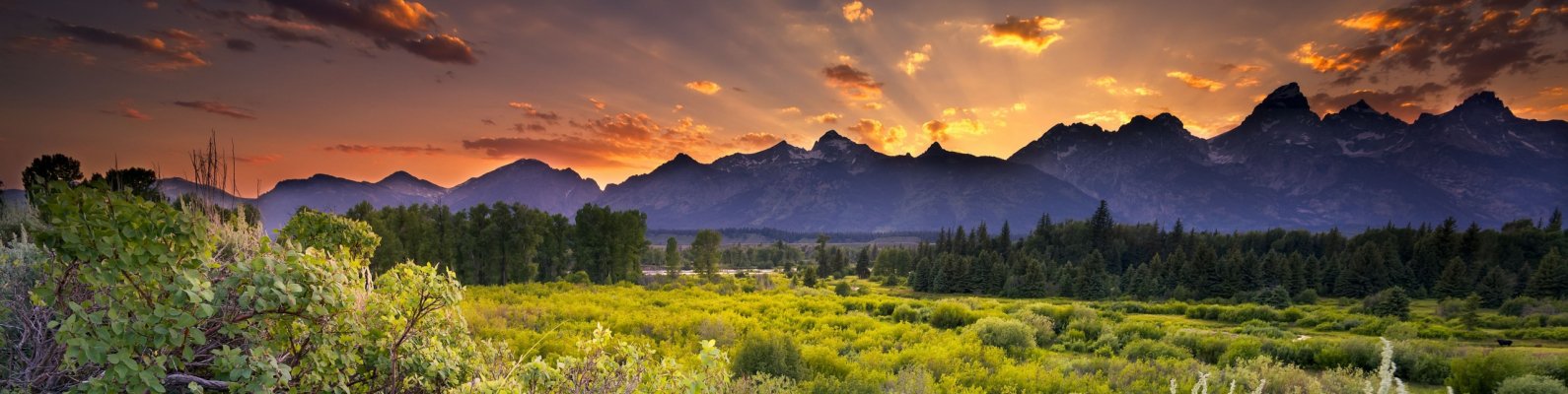 Wallpaper: sunset, mountains, landscape - 1590x400