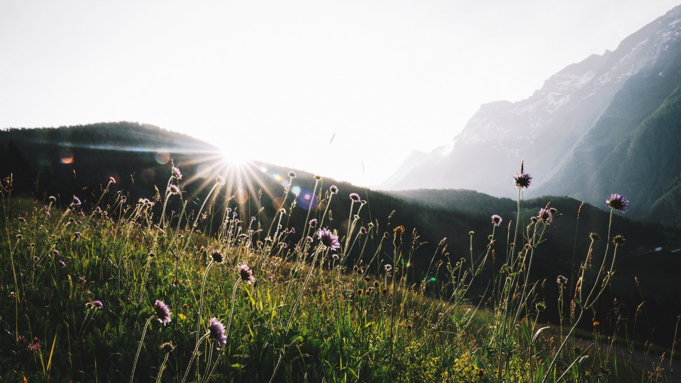 Wallpaper: sun, mountains - 1366x768
