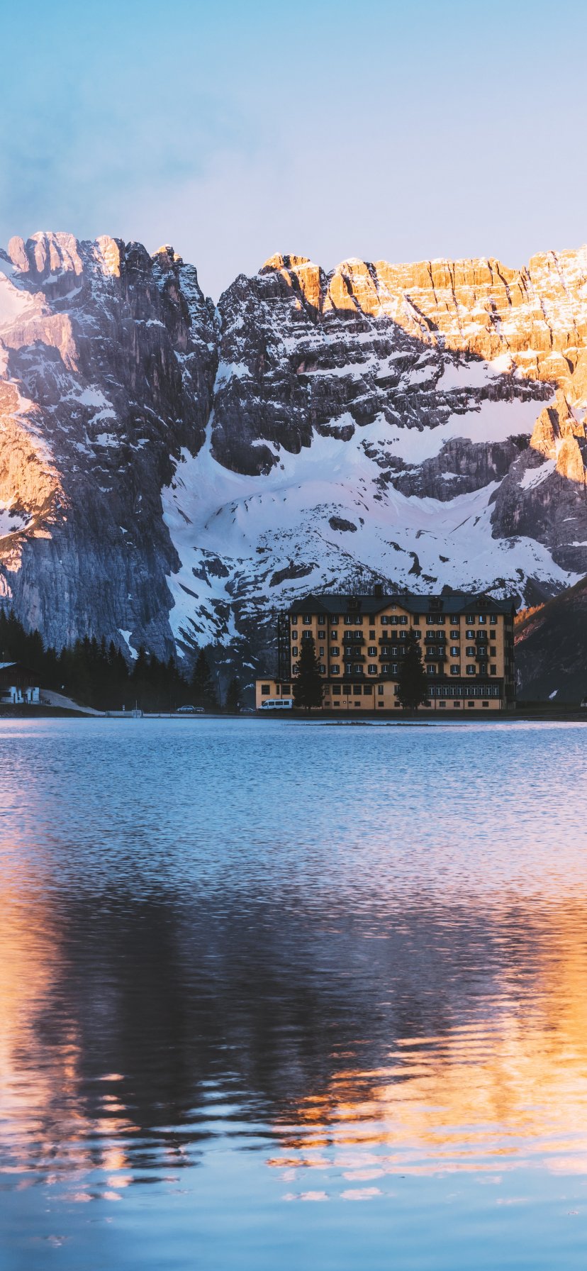 Wallpaper: lake house, mountain range - 828x1792