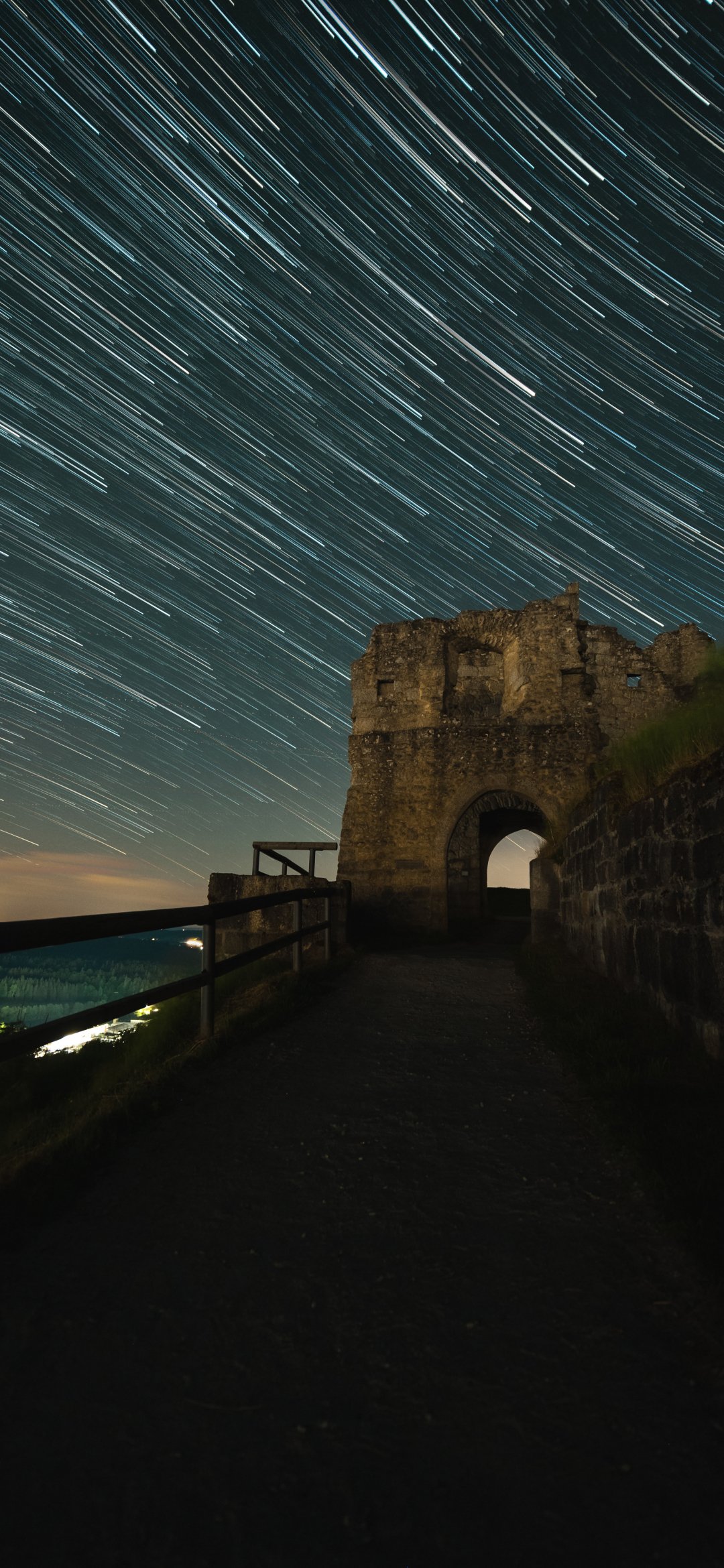 Wallpaper: night fortress, starry sky - 1080x2340