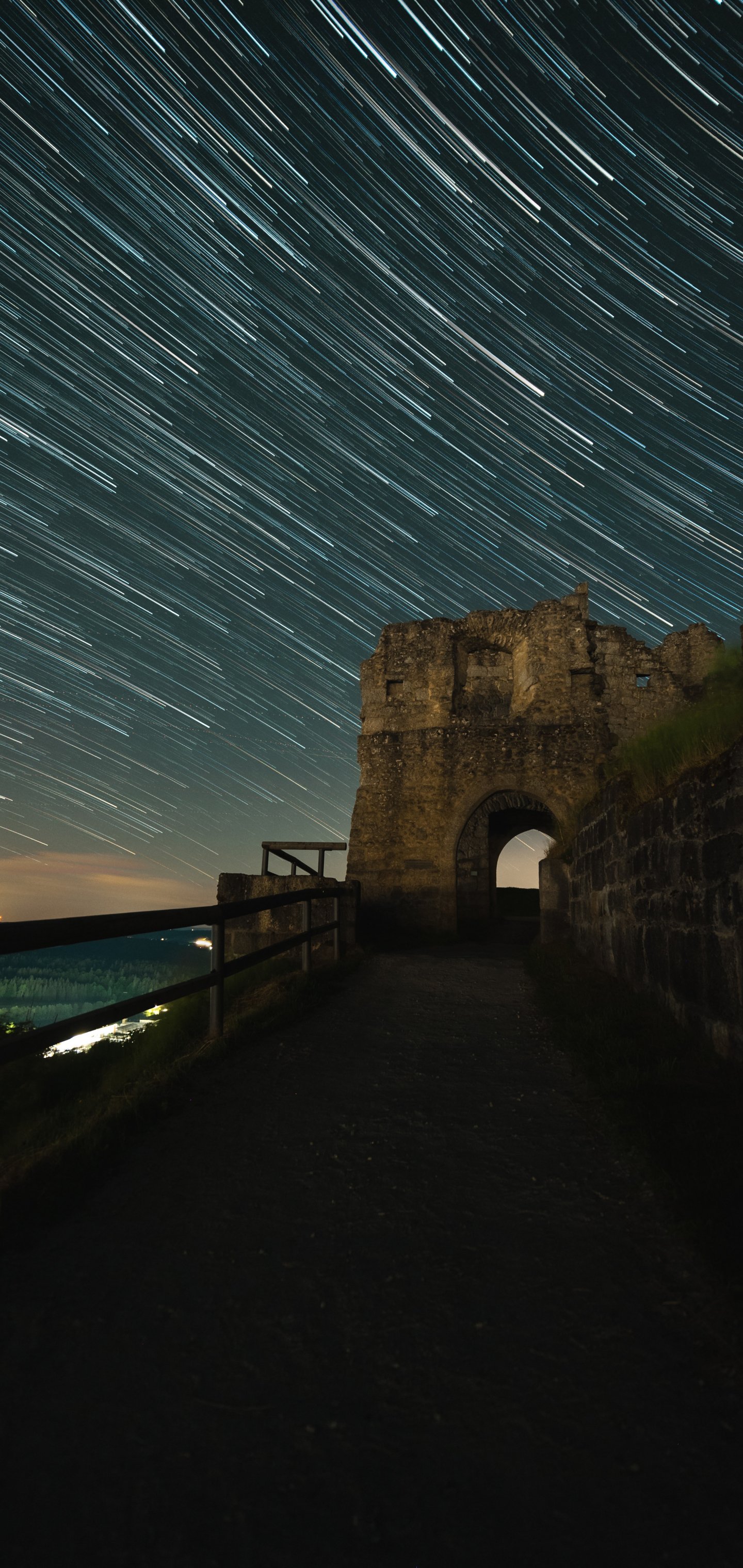 Wallpaper: night fortress, starry sky - 1440x3040