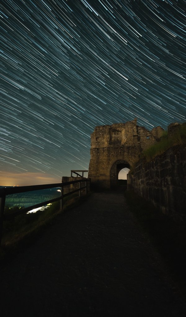 Wallpaper: night fortress, starry sky - 600x1024