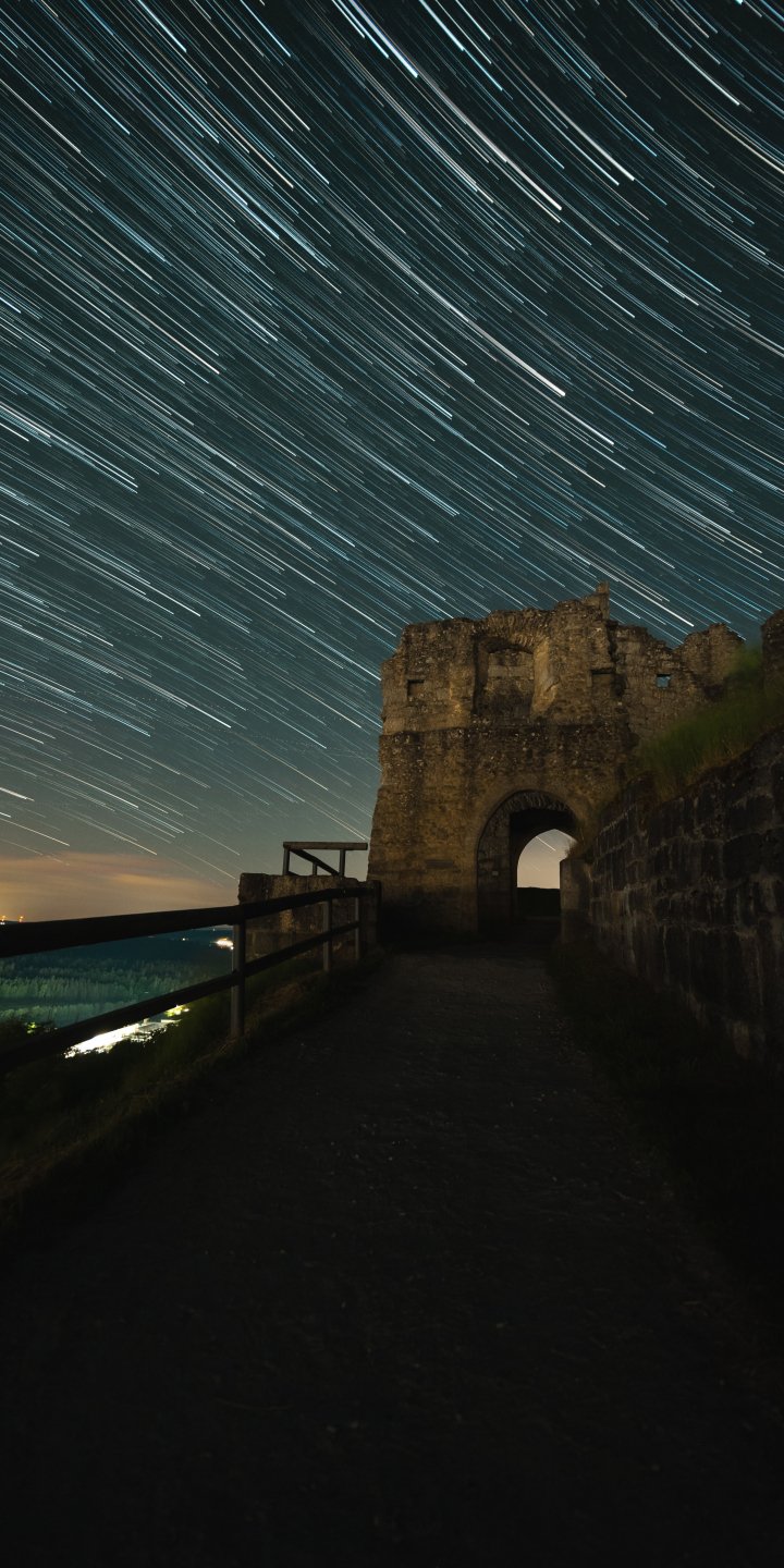 Wallpaper: night fortress, starry sky - 720x1440