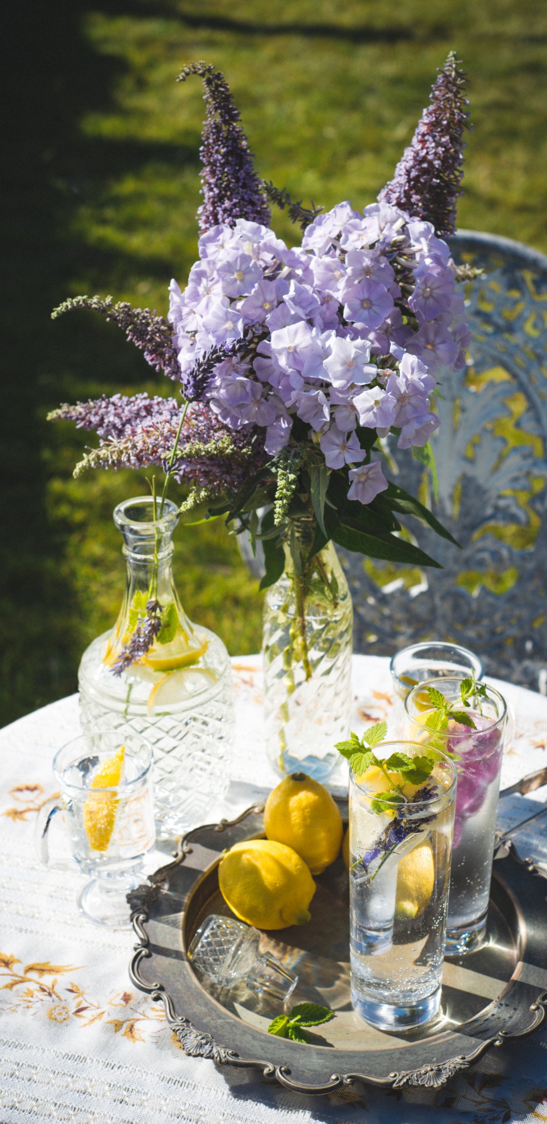 Wallpaper: summer table, bouquet - 1080x2220