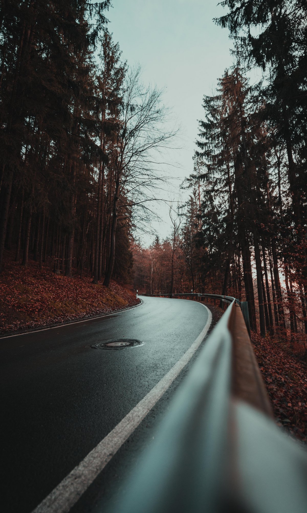 Wallpaper: wet road, in the woods - 1200x2000