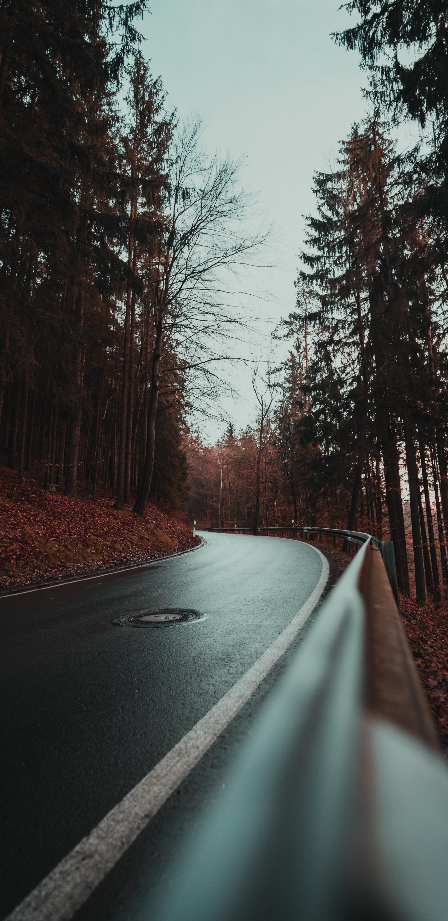 Wallpaper: wet road, in the woods - 1440x2960