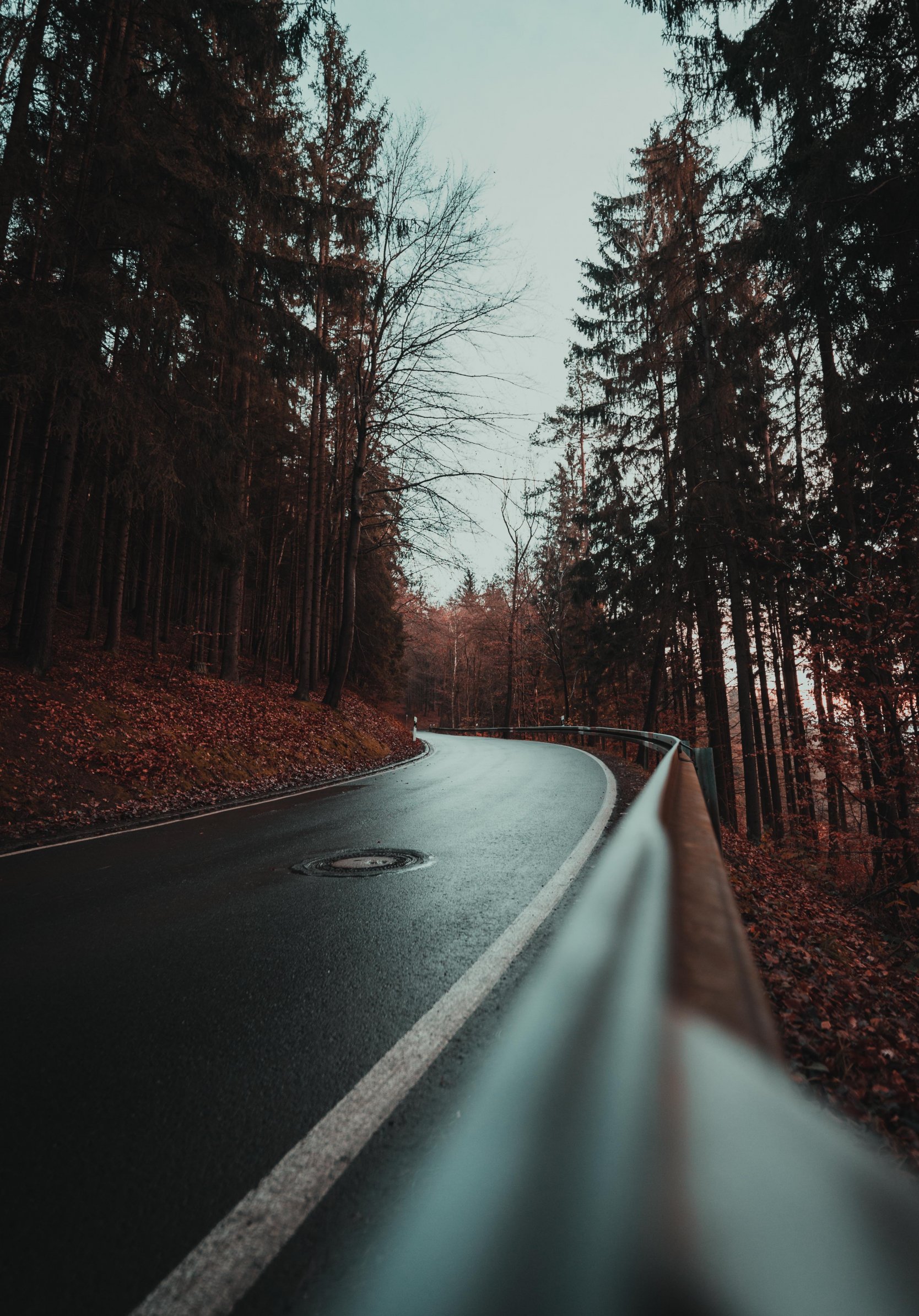 Wallpaper: wet road, in the woods - 1668x2388