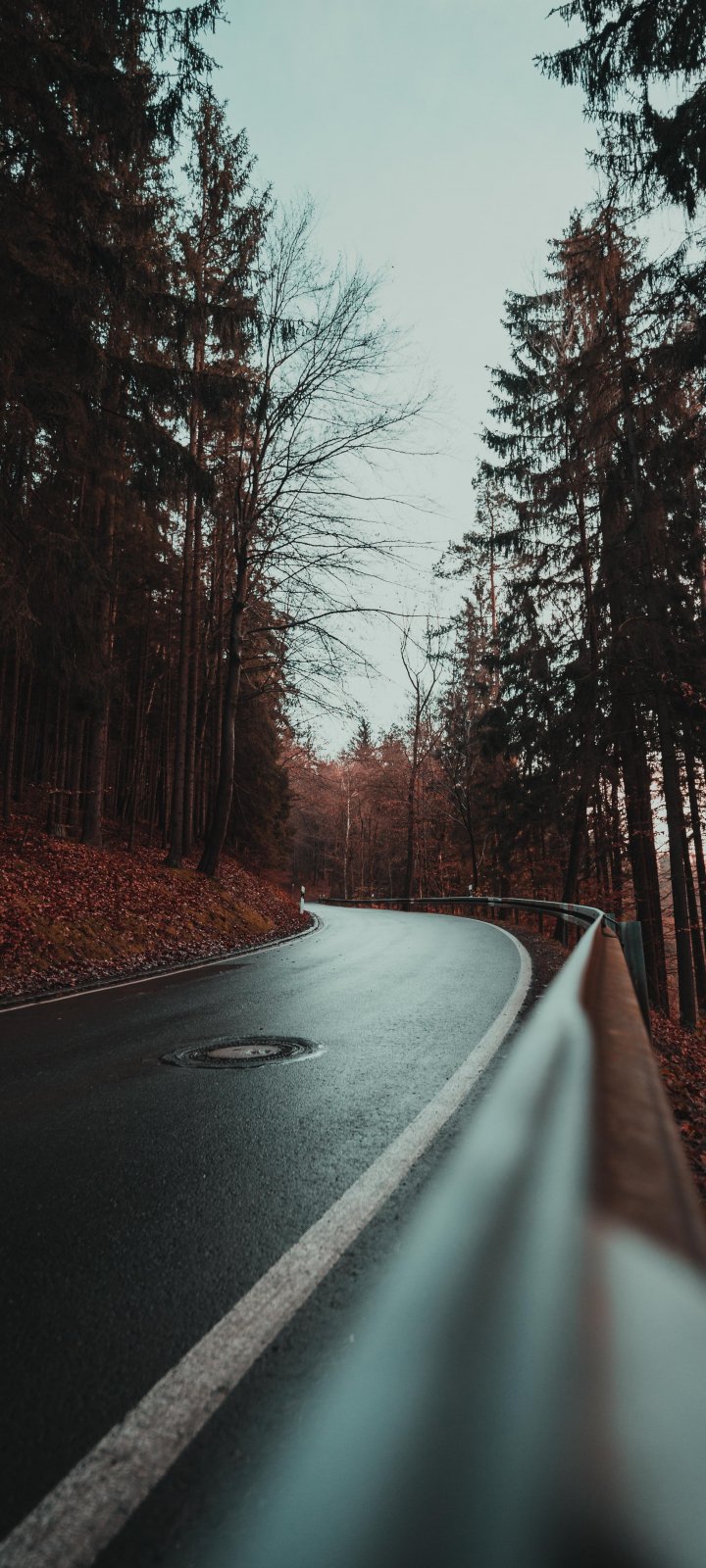 Wallpaper: wet road, in the woods - 720x1600
