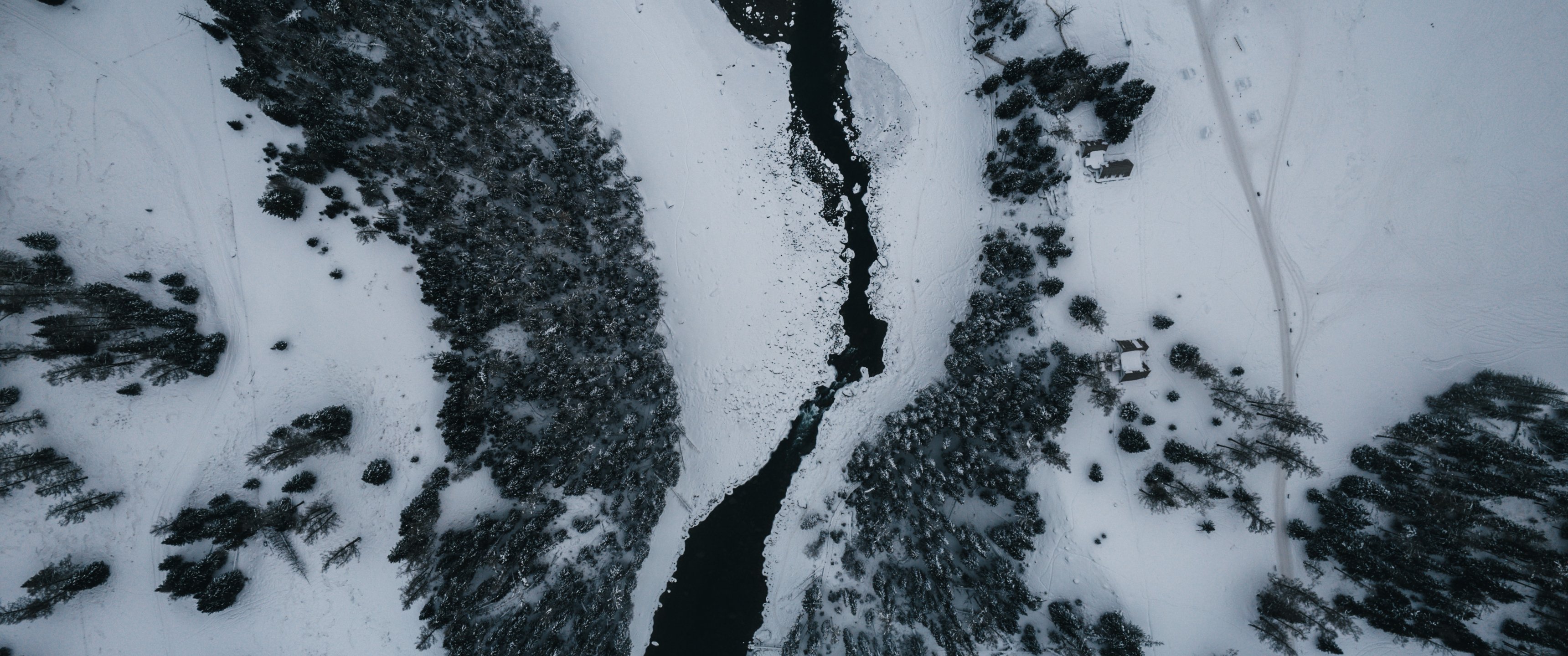 Wallpaper: winter scenery, above ground - 3440x1440