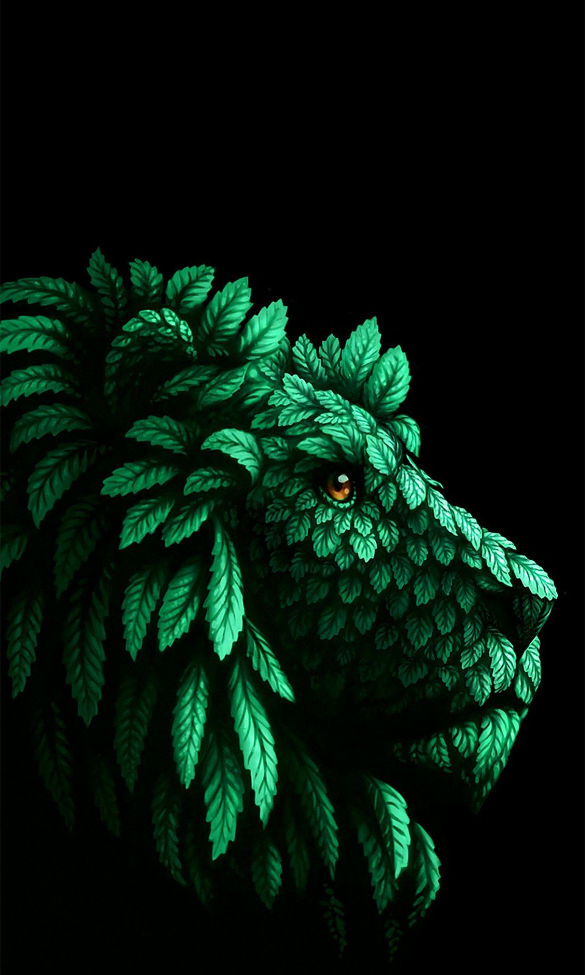 Wallpaper: lion, green, black - 1200x2000