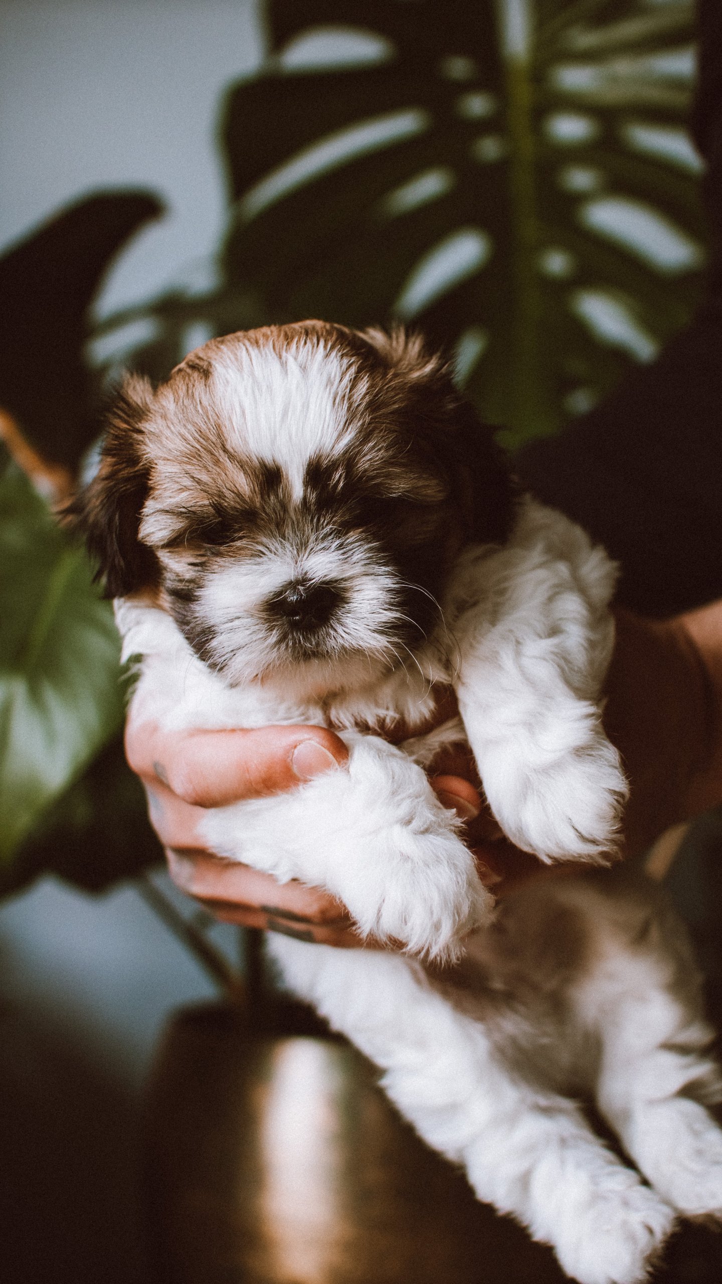 Wallpaper: dog, puppy in arms - 1440x2560