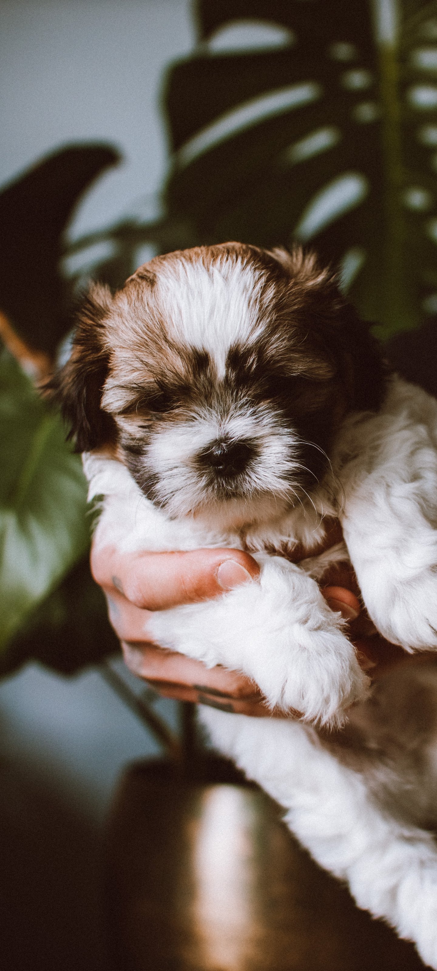 Wallpaper: dog, puppy in arms - 1440x3200