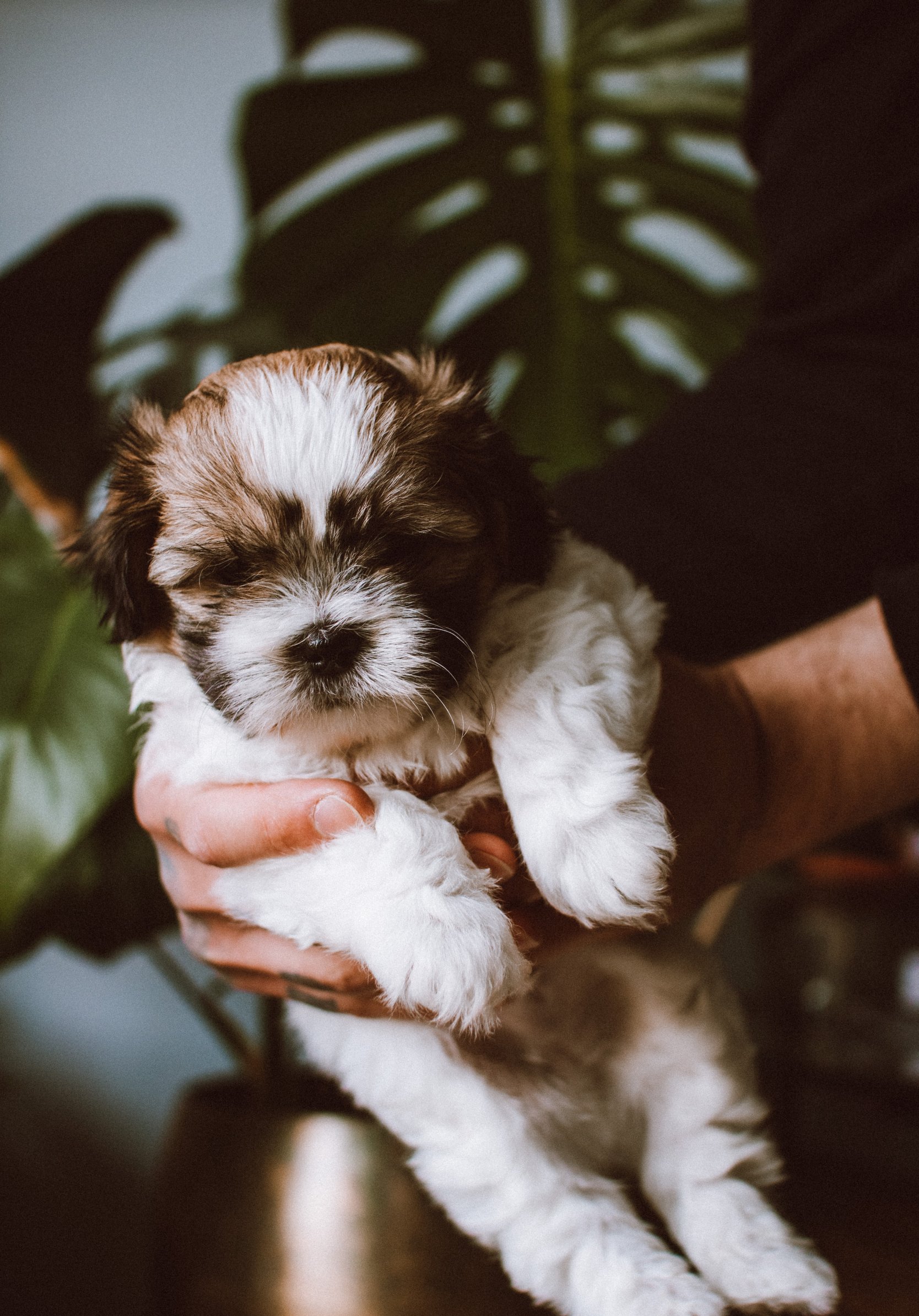 Wallpaper: dog, puppy in arms - 1668x2388