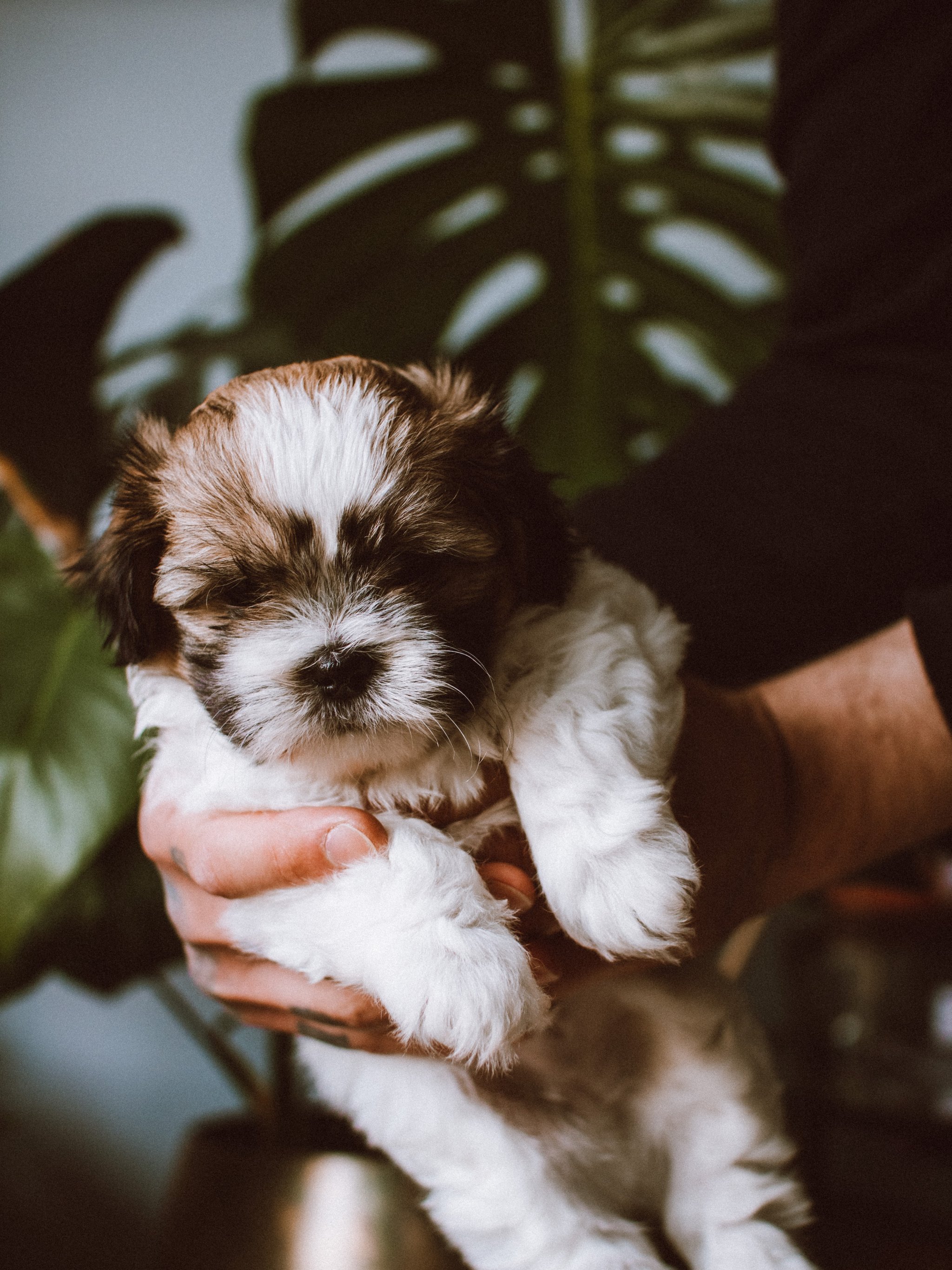 Wallpaper: dog, puppy in arms - 2048x2732