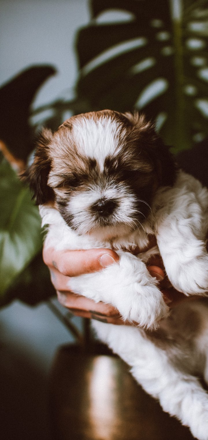 Wallpaper: dog, puppy in arms - 720x1520