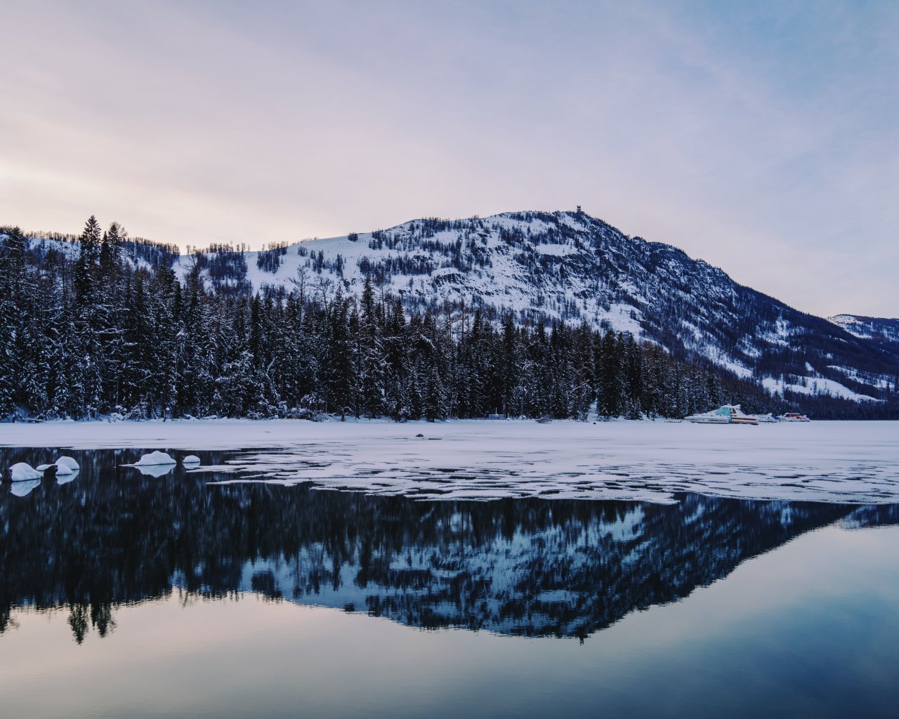 Wallpaper: winter lake, mountain - 1280x1024