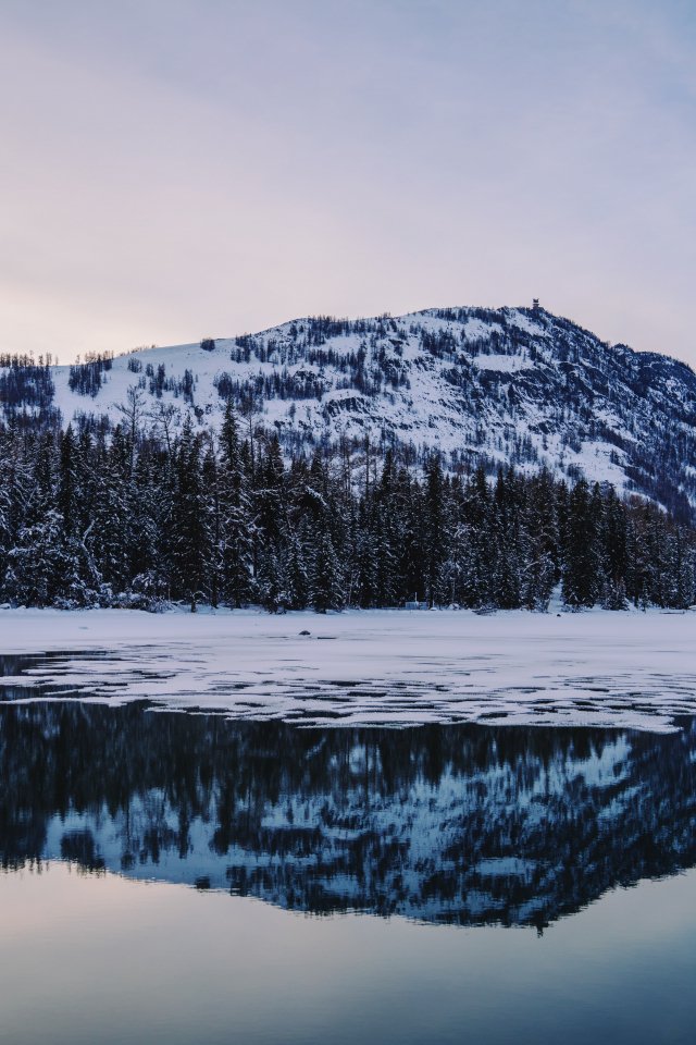 Wallpaper: winter lake, mountain - 640x960