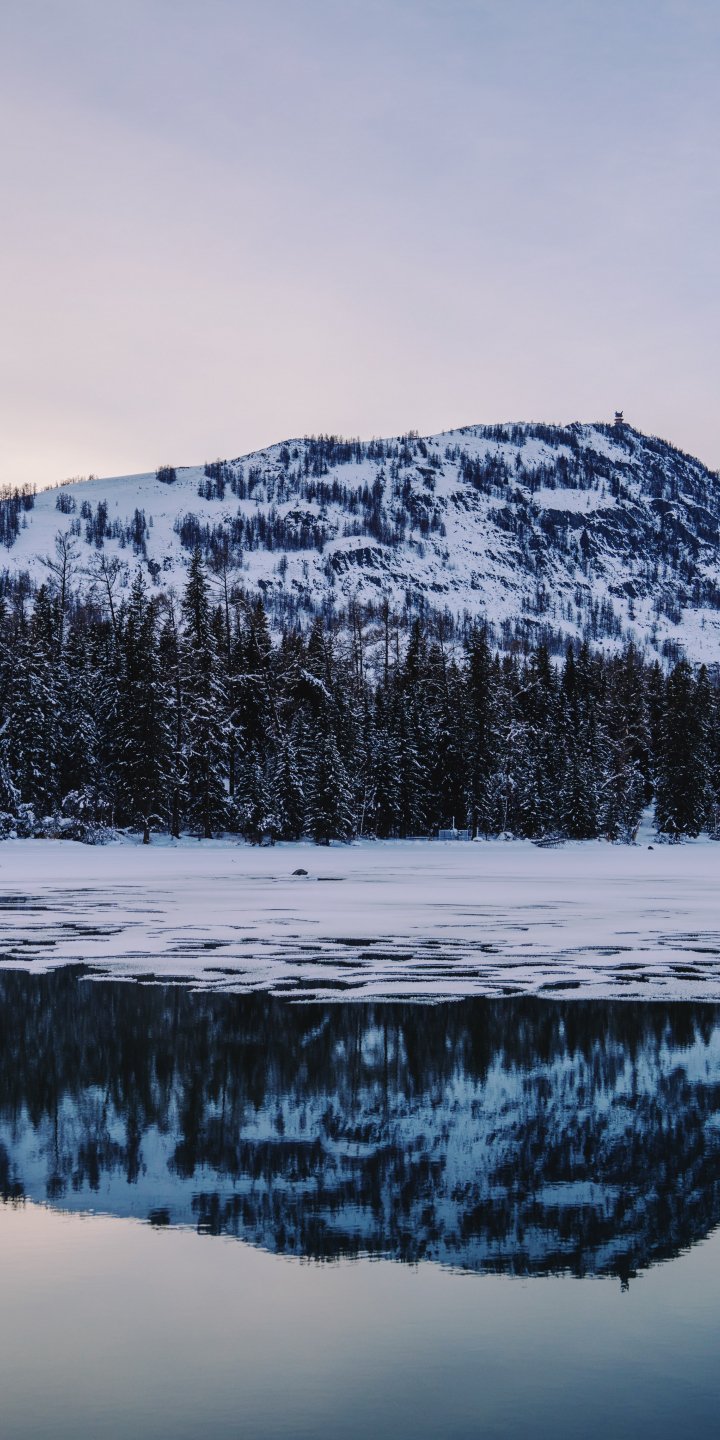 Wallpaper: winter lake, mountain - 720x1440