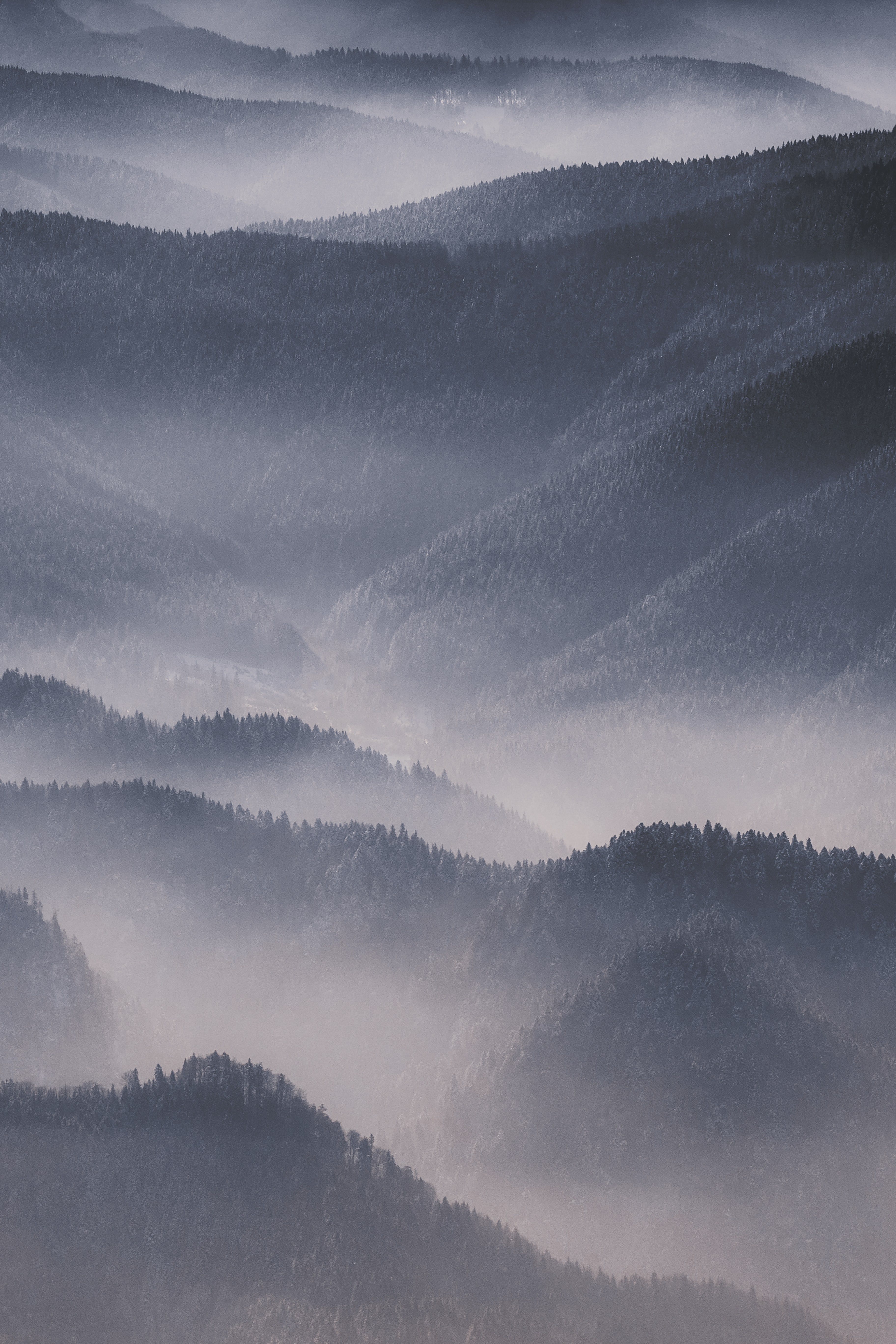Wallpaper: hills in the fog - 3648x5472