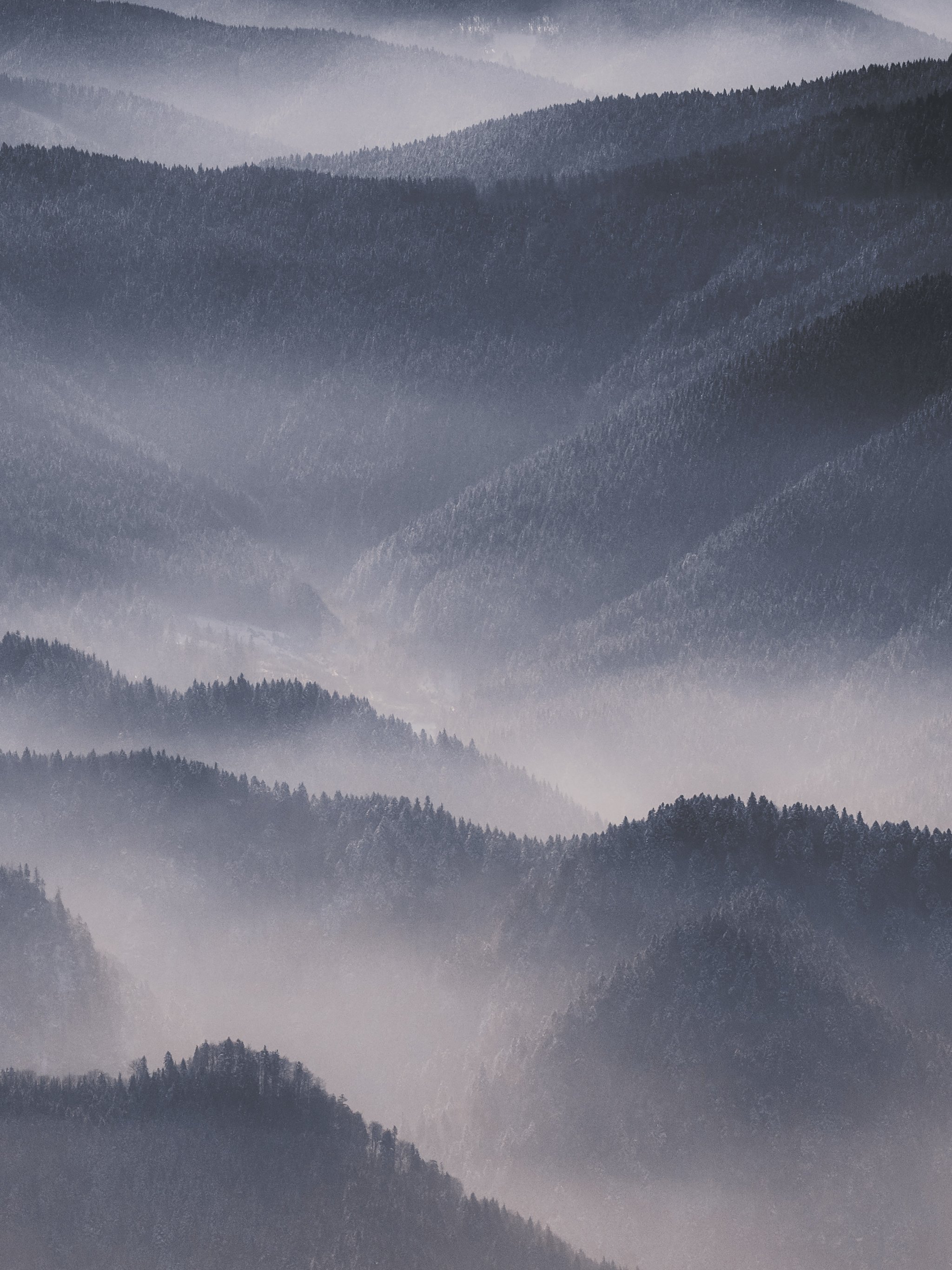 Wallpaper: hills in the fog - 2048x2732