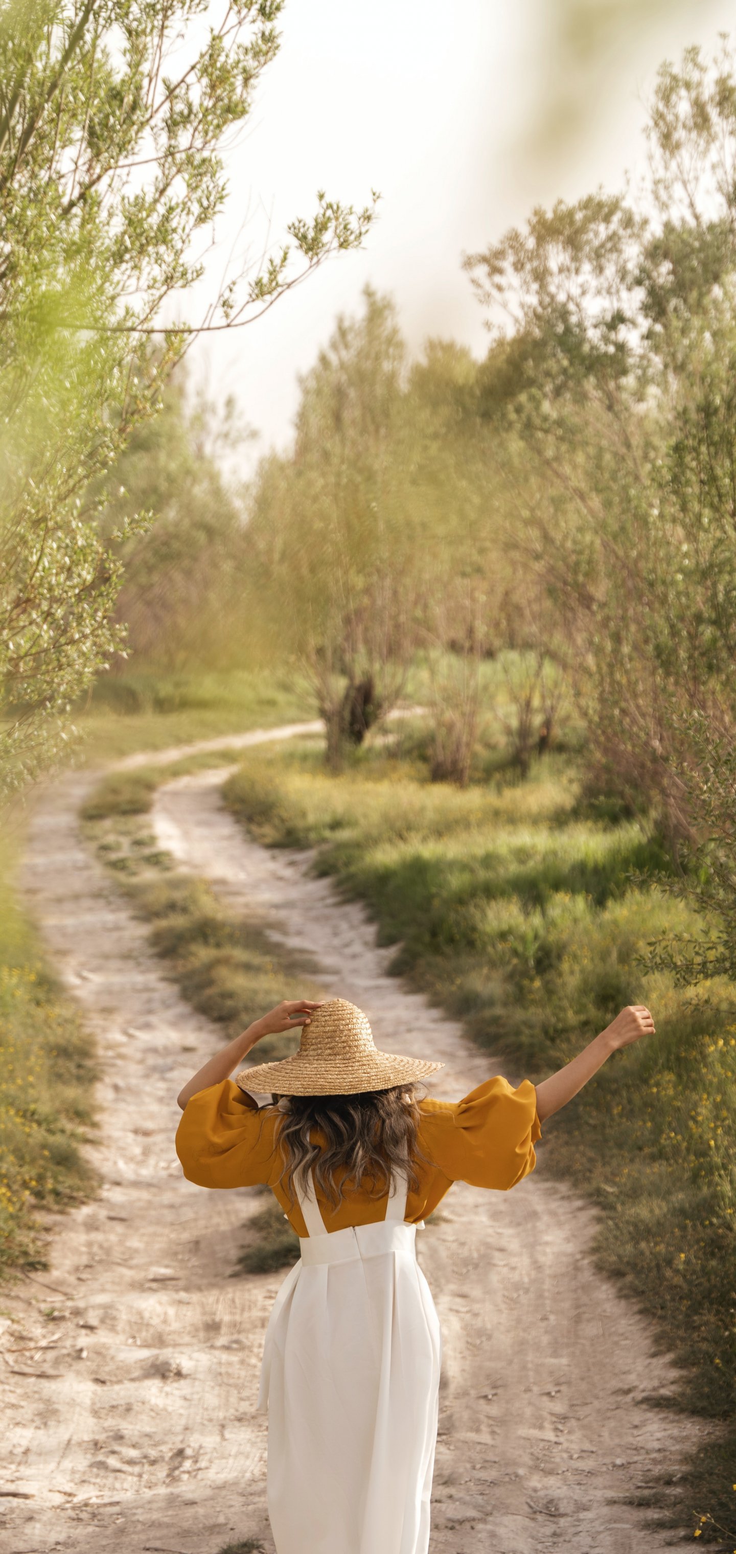 Wallpaper: footpath, girl in a hat - 1440x3040