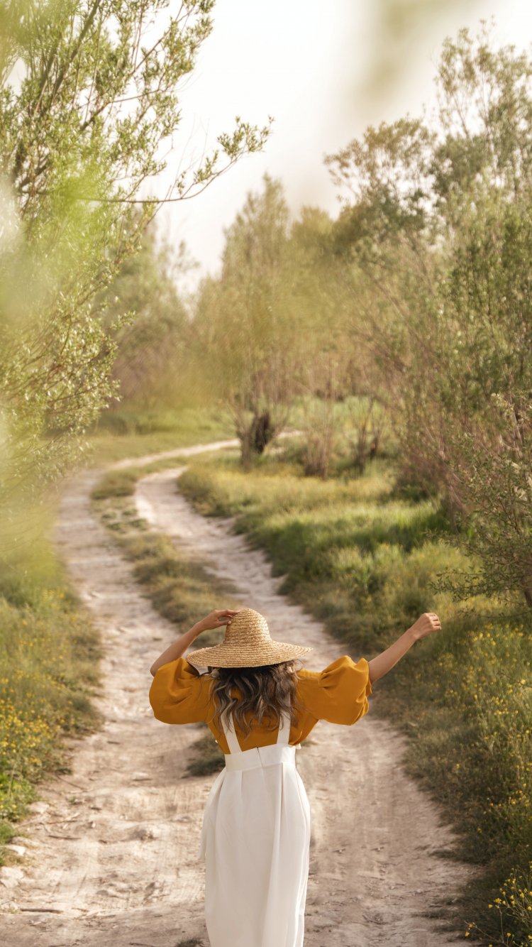 Wallpaper: footpath, girl in a hat - 750x1334