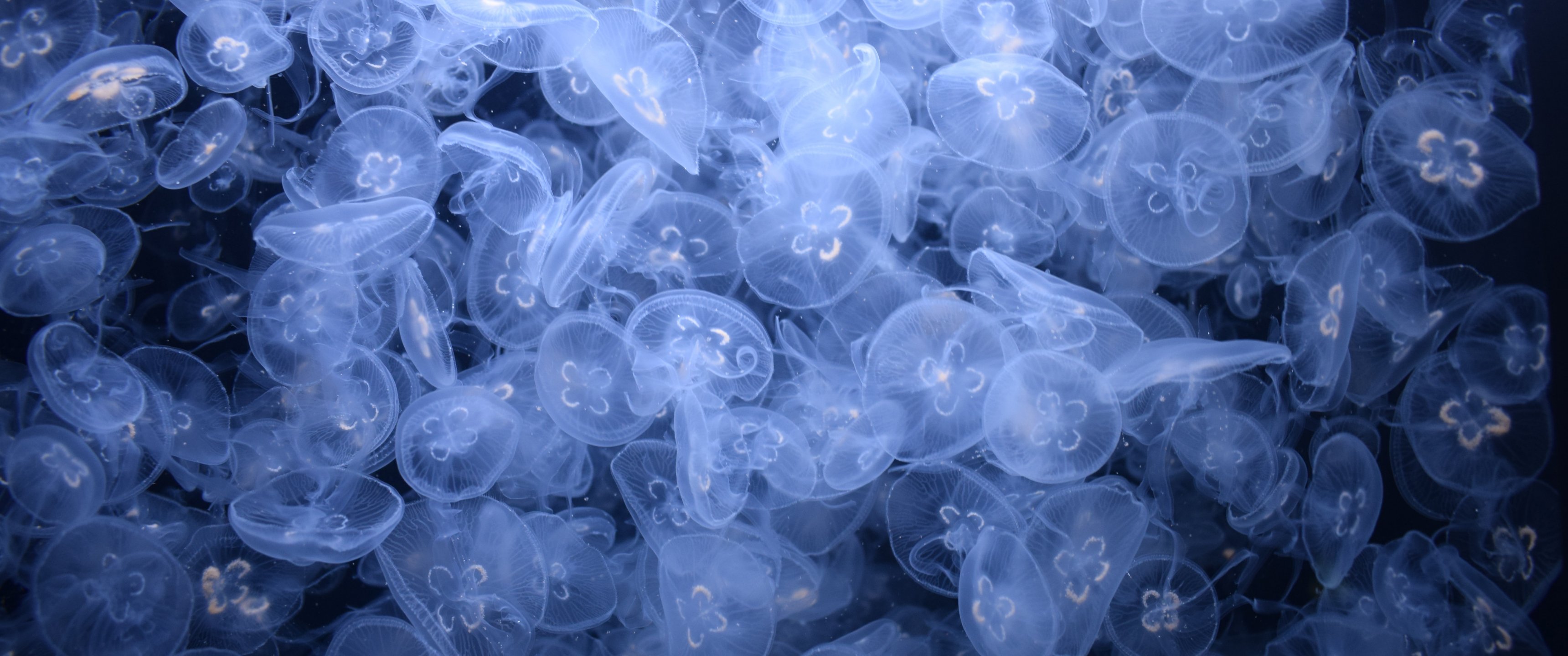 Wallpaper: a lot of jellyfish, underwater world - 3440x1440