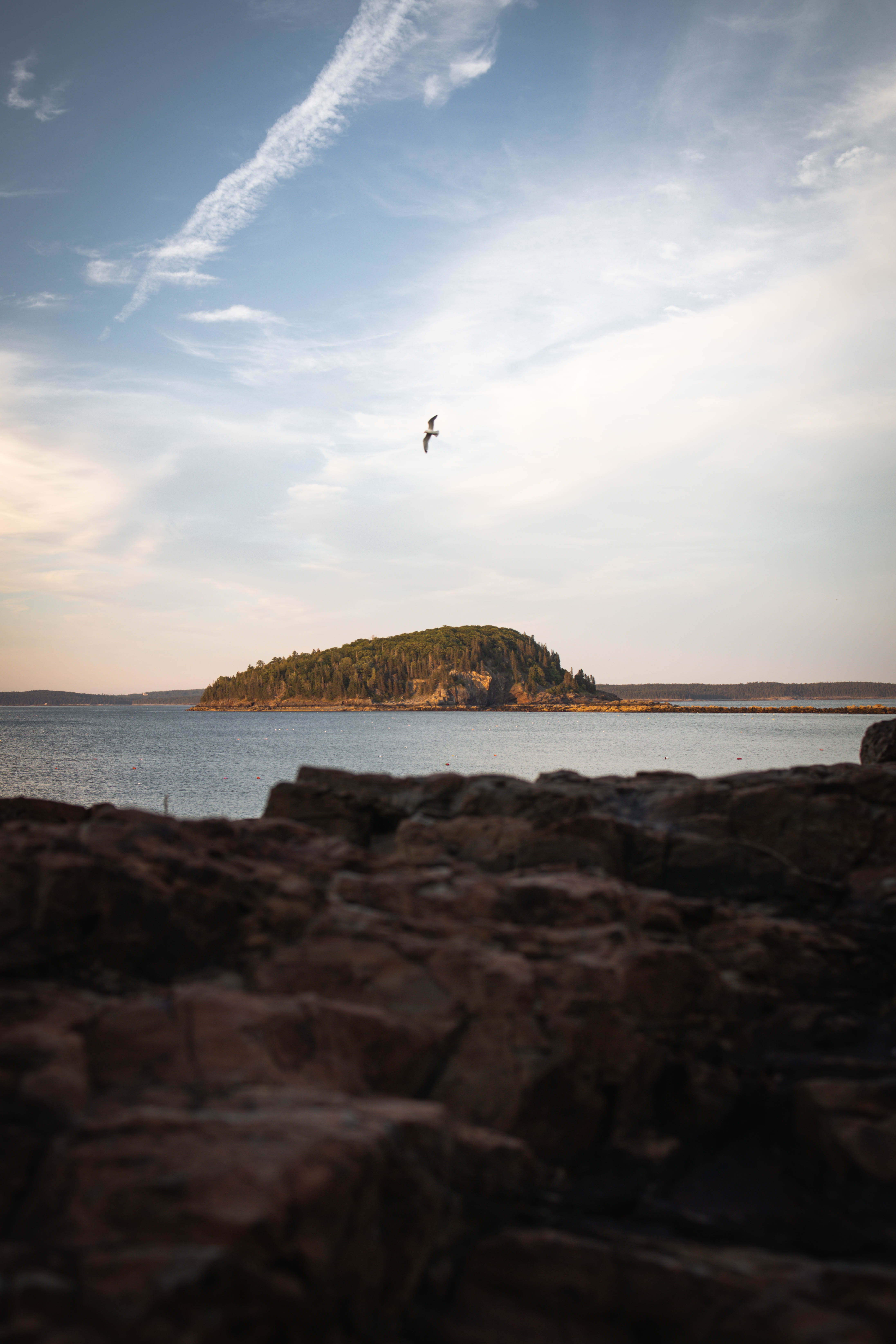 Wallpaper: island in the lake, bird flight - 4383x6574
