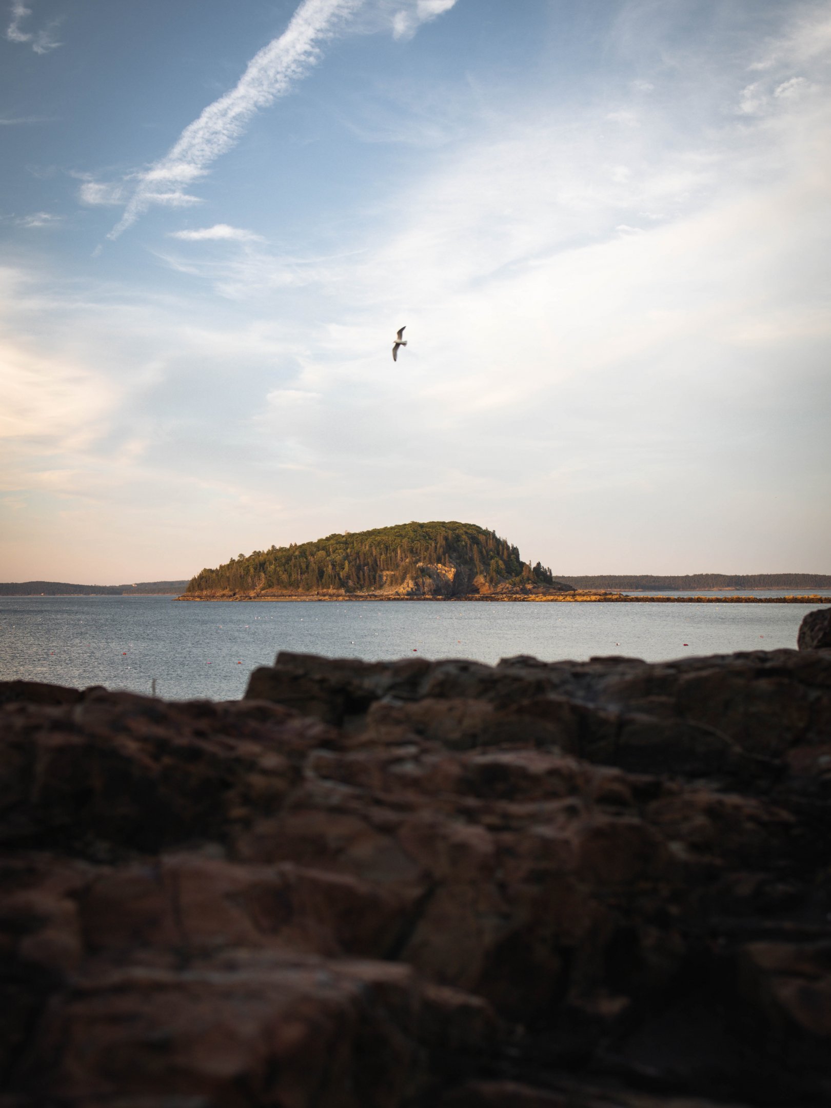 Wallpaper: island in the lake, bird flight - 1620x2160